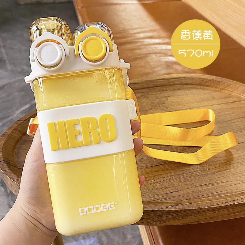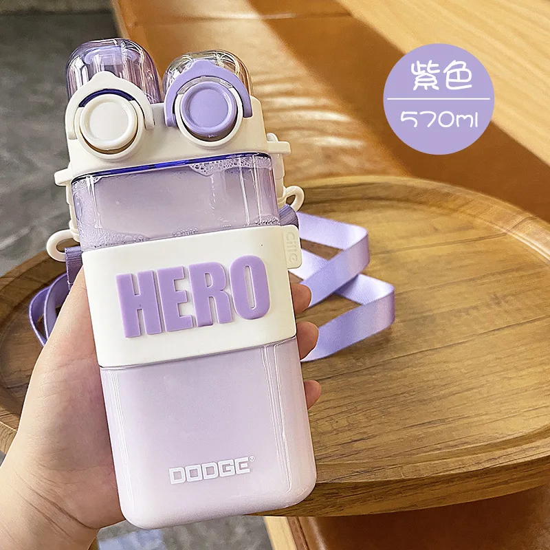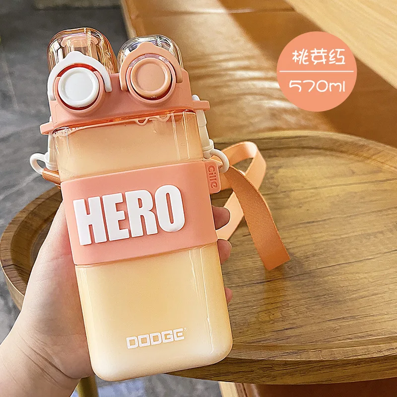 Summer Square Water Cup High Beauty Double Drinking Straw Plastic Cute Student Water Cup