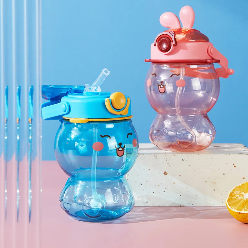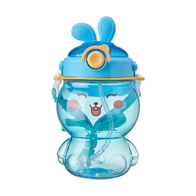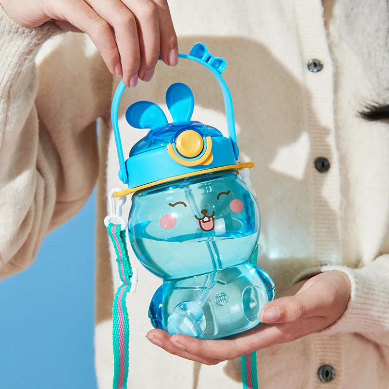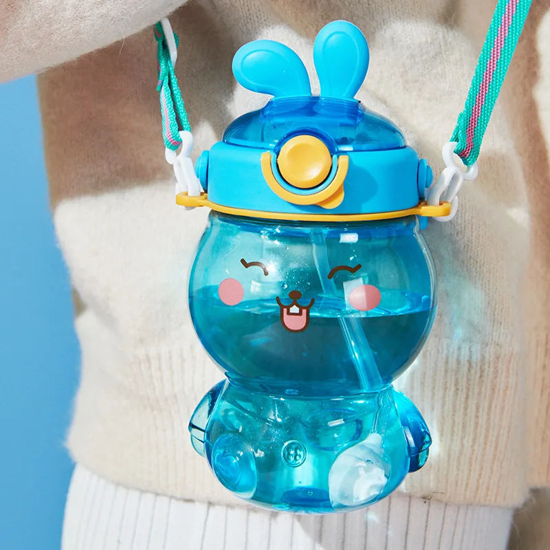 Wholesale Portable Plastic Straw Cup Children Outdoor Shoulder Strap Water Bottle