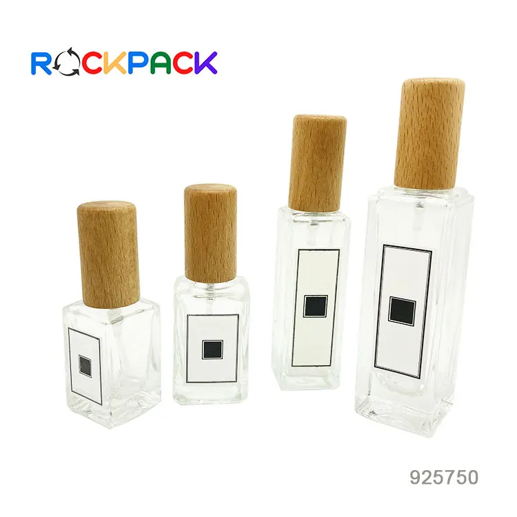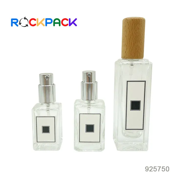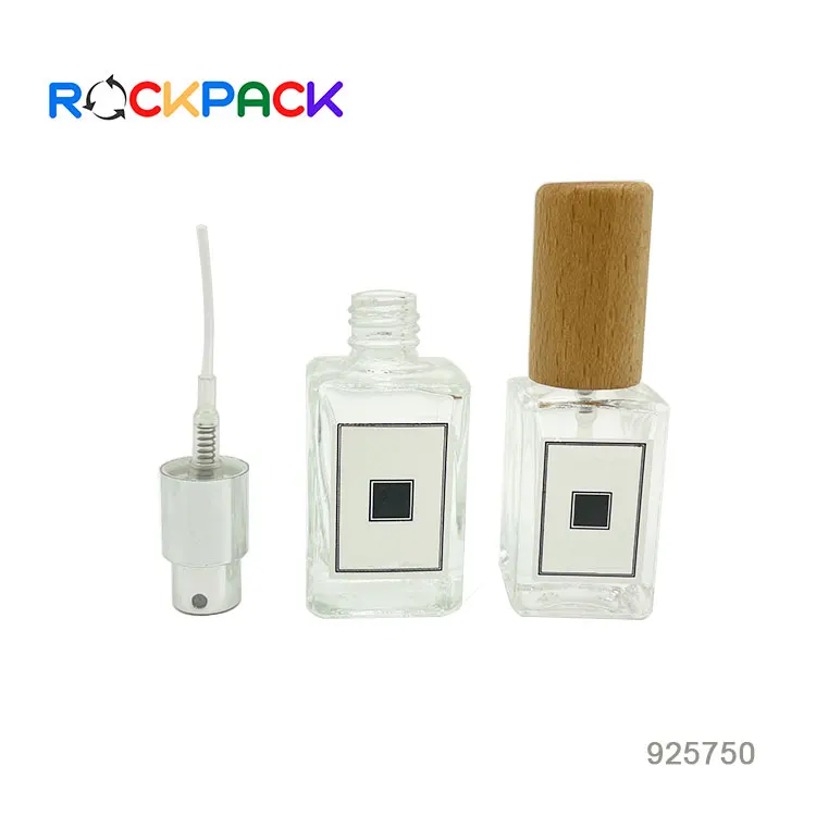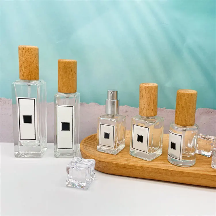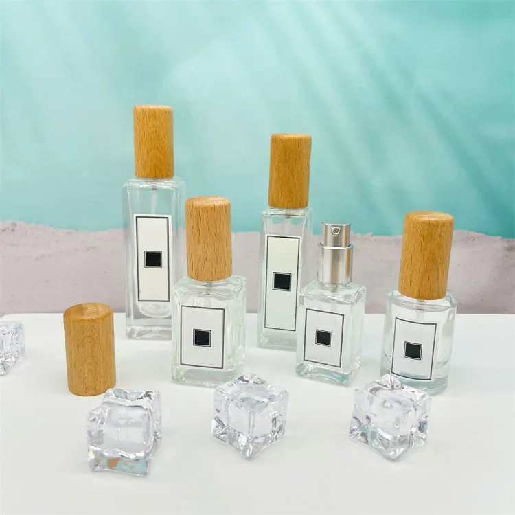 STOCK NOW! 5ml 10ml 18ml Clear Square Round Bamboo Cap Spray Refillable Glass Perfume Bottle