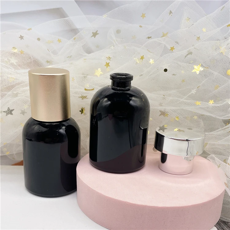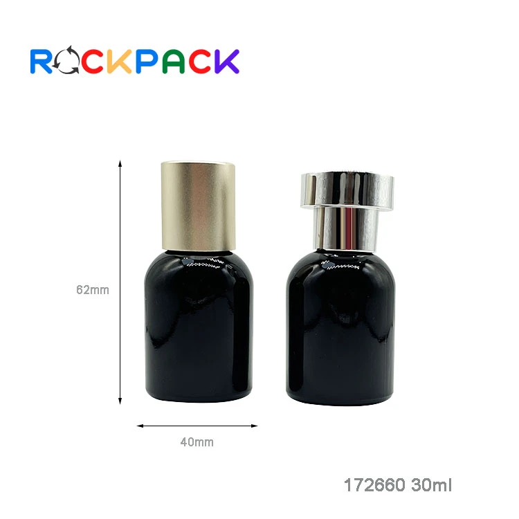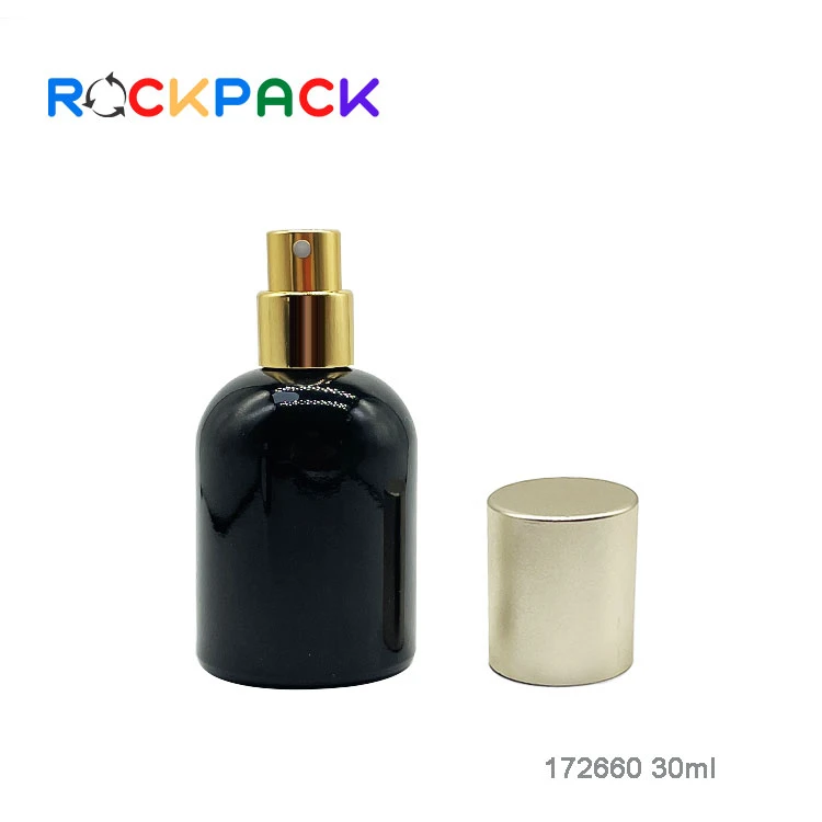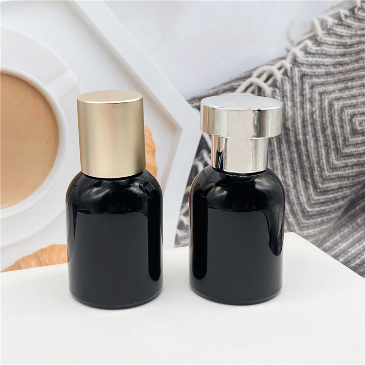 30ml Glass black round shape empty refill spray perfume bottles with metal lids | |