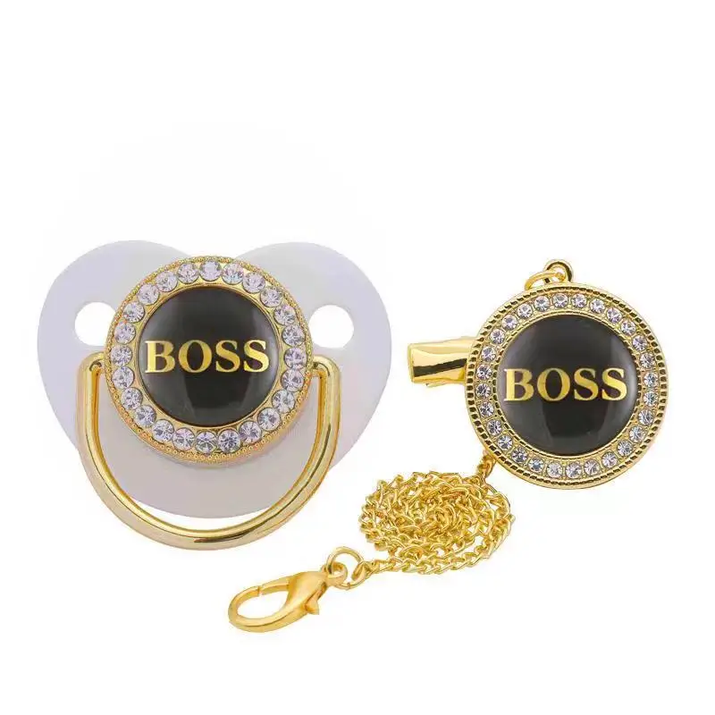 New multi-color high-end diamond embellishment pacifier with chain clip