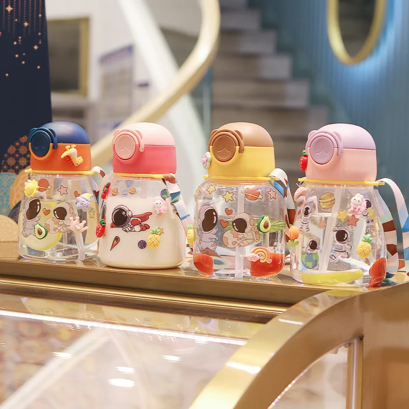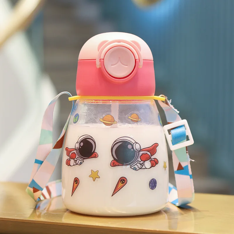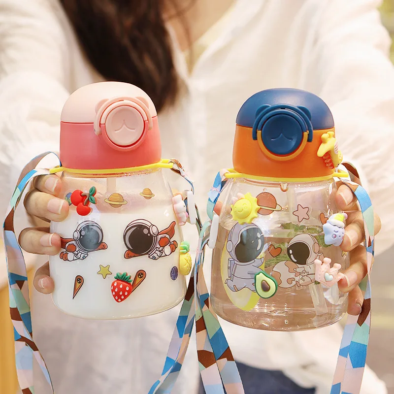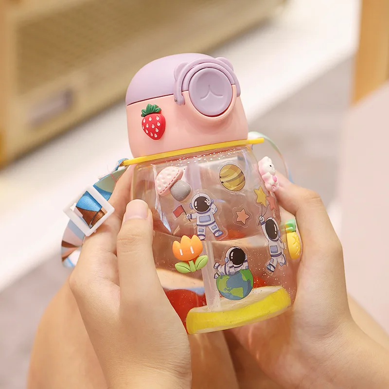 High Quality 550ml Cartoon Children'S Plastic Cup Outdoor School Cute Large Capacity Clear Straw Water Cup