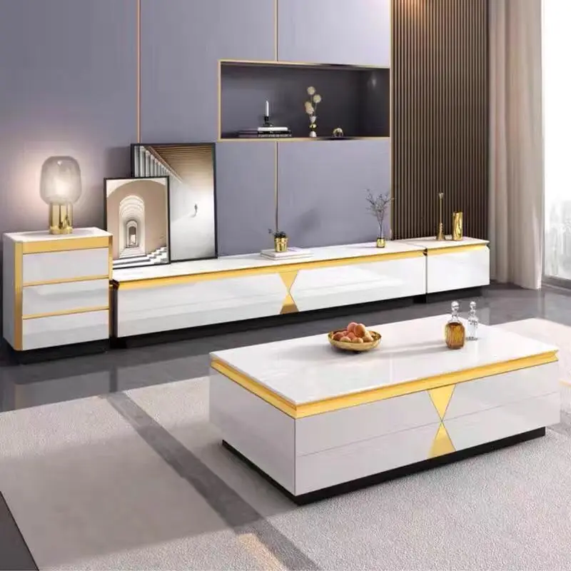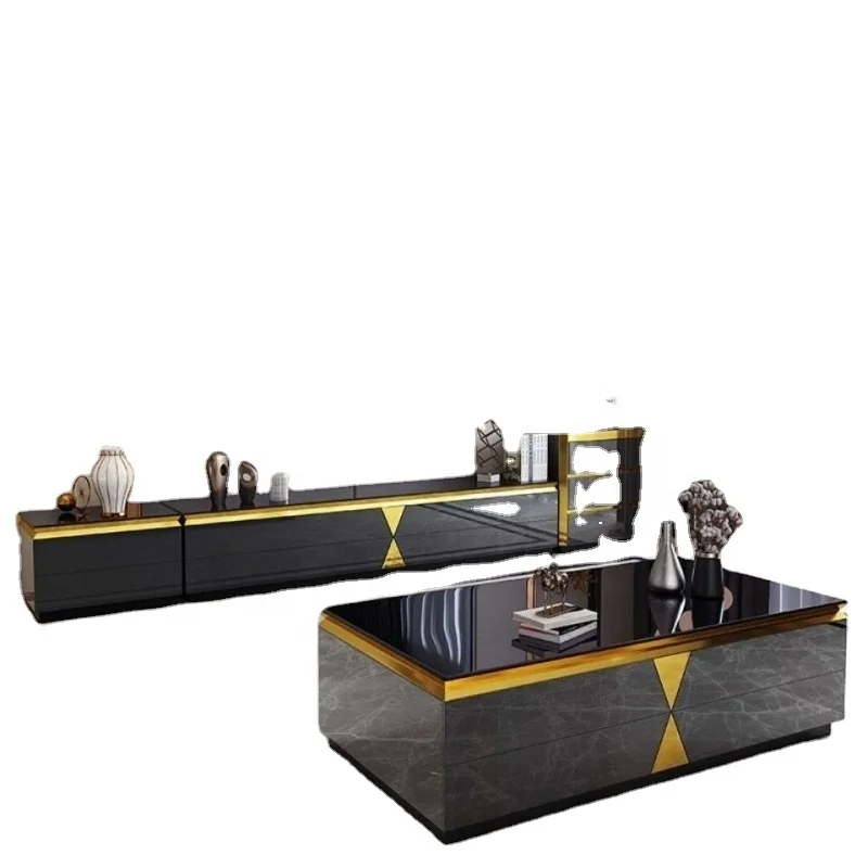 Coffee Table Set Living Room Tv Cabinet Combination Size Room Tempered Glass Rock Panel Coffee Table Simple Large Solid Wood
