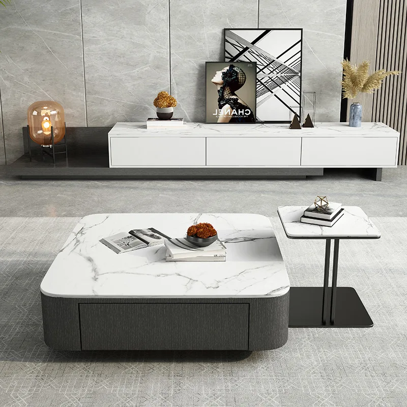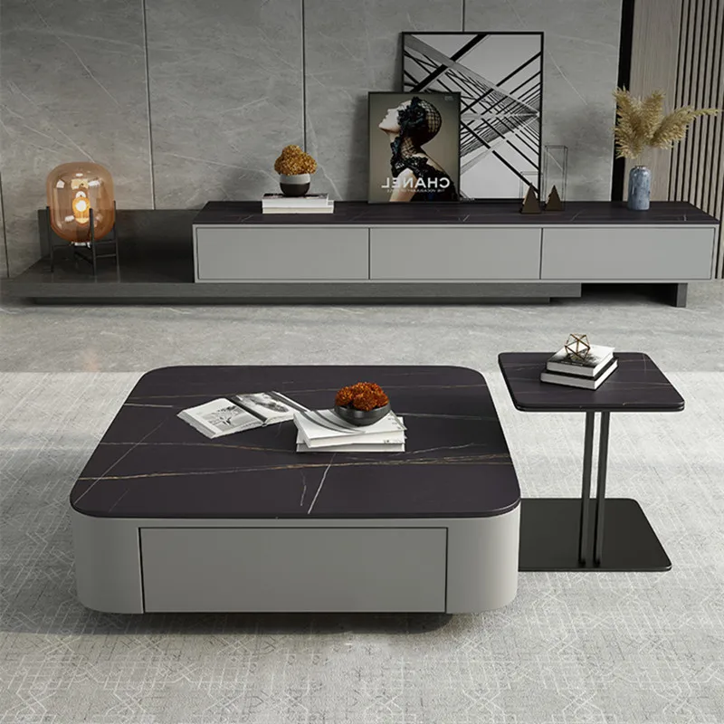 Coffee Table set living room 2023 new rock panel square coffee table size modern simple Italian style living room