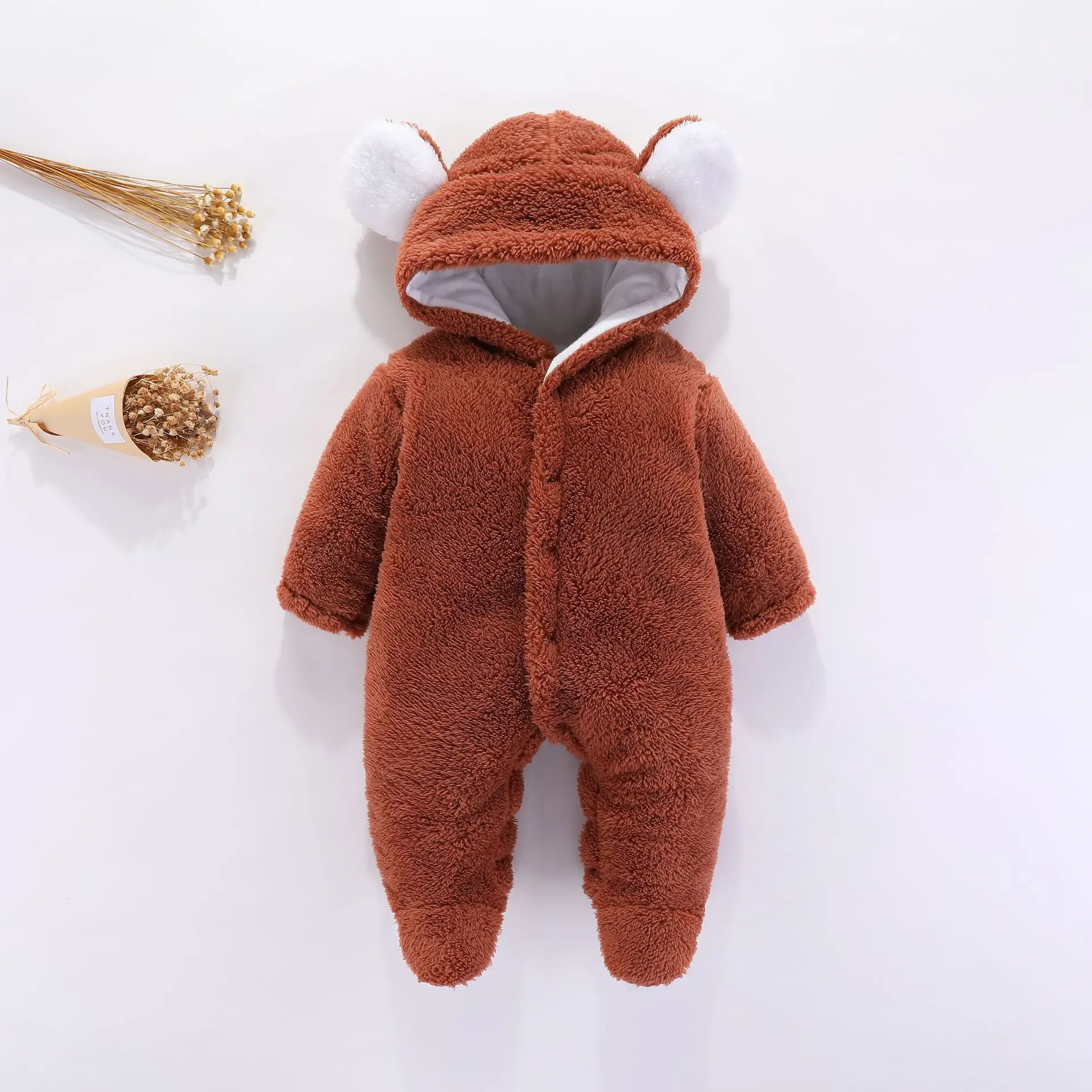 Description | Cute Cartoon Baby Winter Fleece Thickened Jumpsuit Snowsuit Foot Guard Solid Color Velvet Baby Hooded Bunny Ear Bear Romper | |
