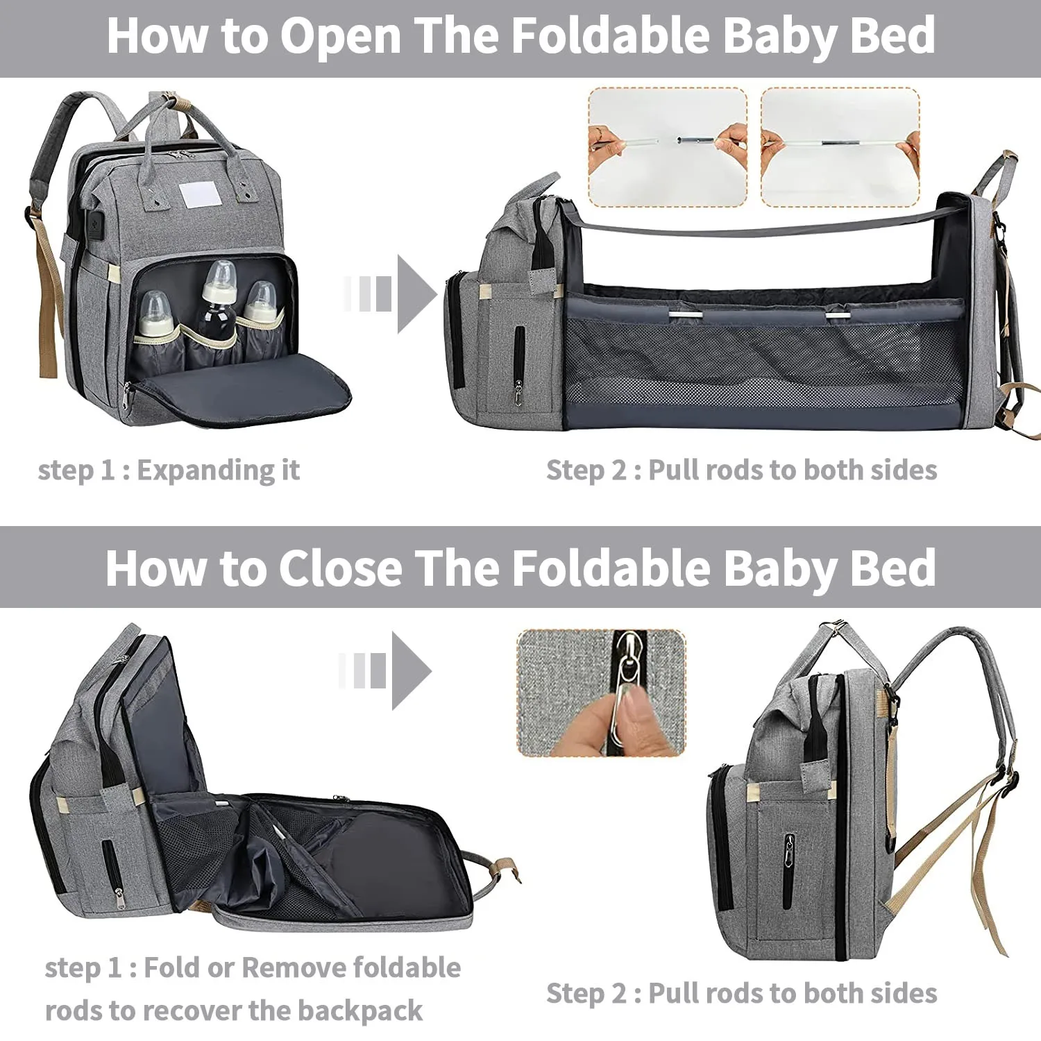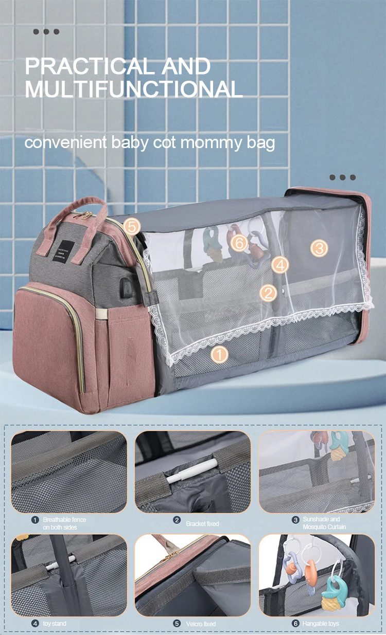 Description | Baby diaper bag and bed portable Foldable multi-function fashion mummy mochilas backpack diaper bags with changing station | |