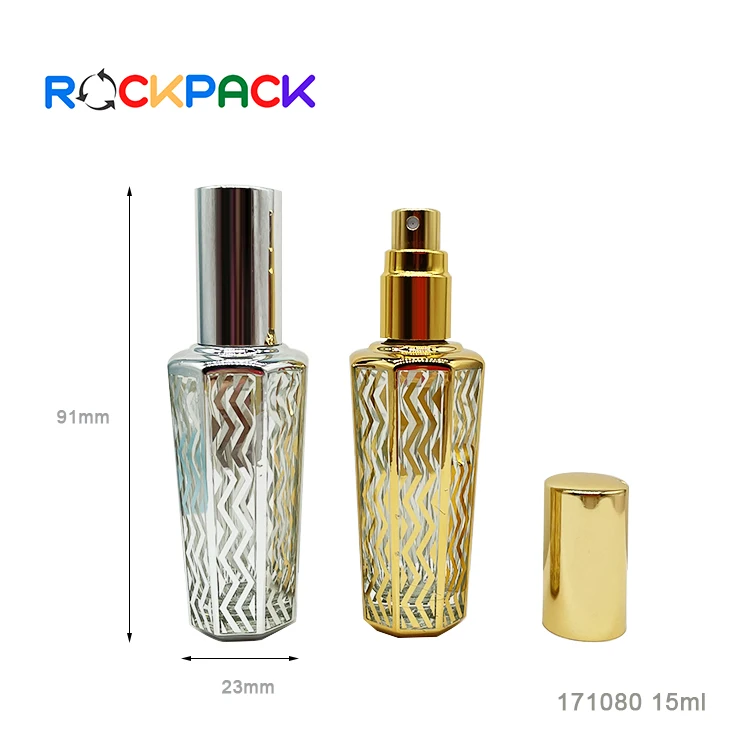 15ml Glass arabic golden perfume bottle with pump sprayer mist