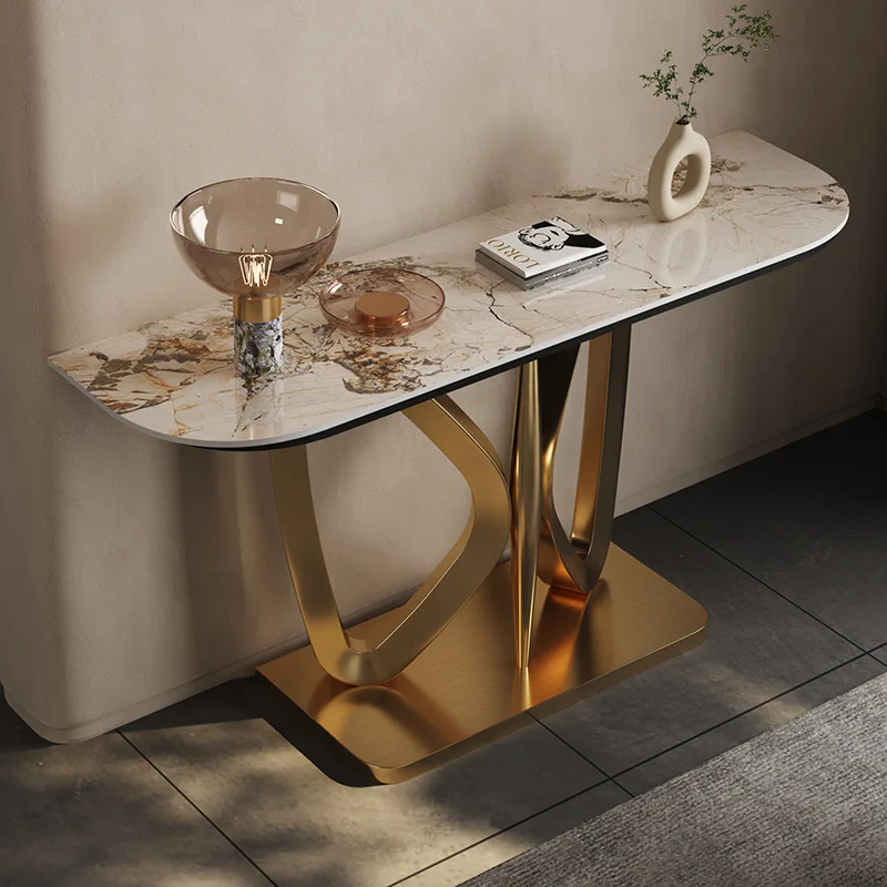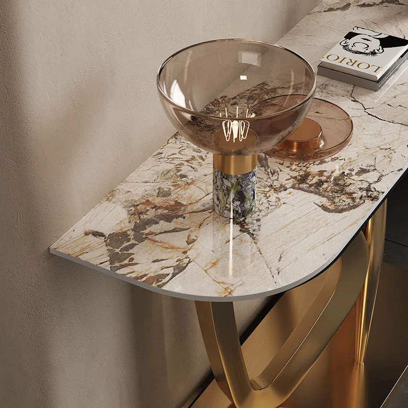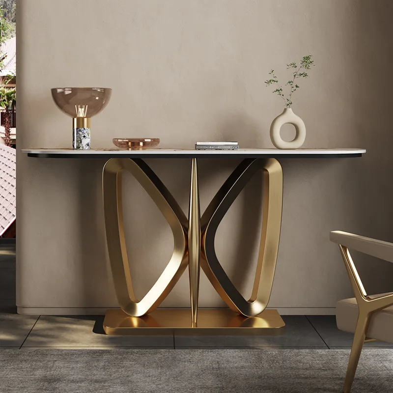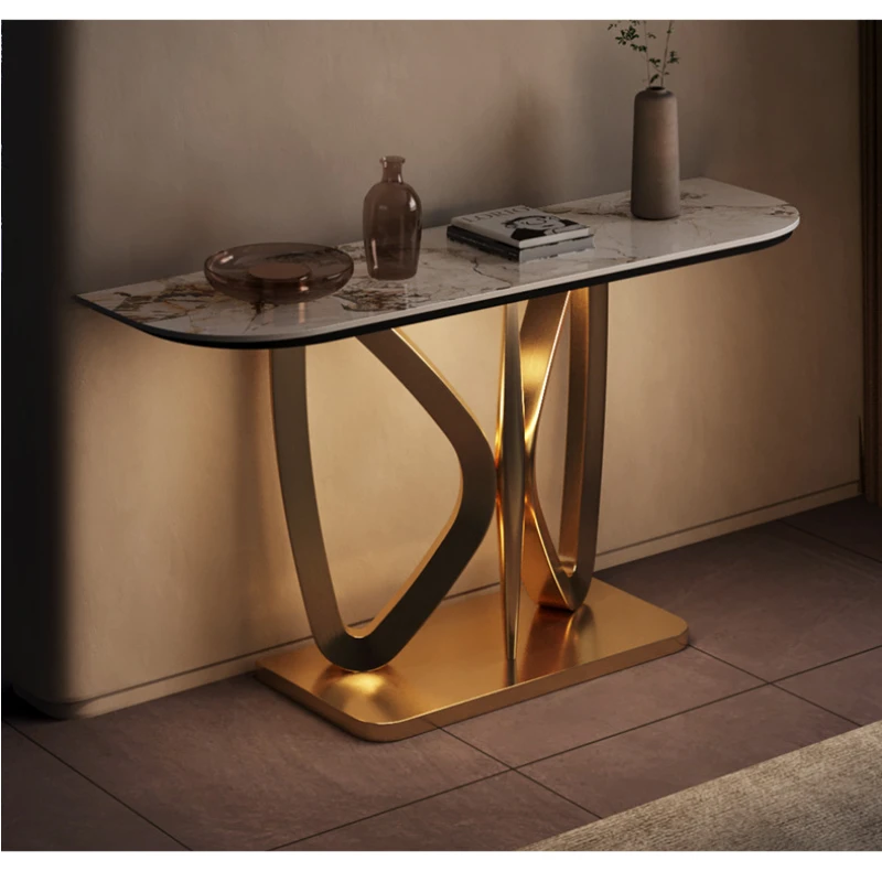 Stainless steel entry porch table rock plate Italian light luxury home metal post-modern decorative table partition door table