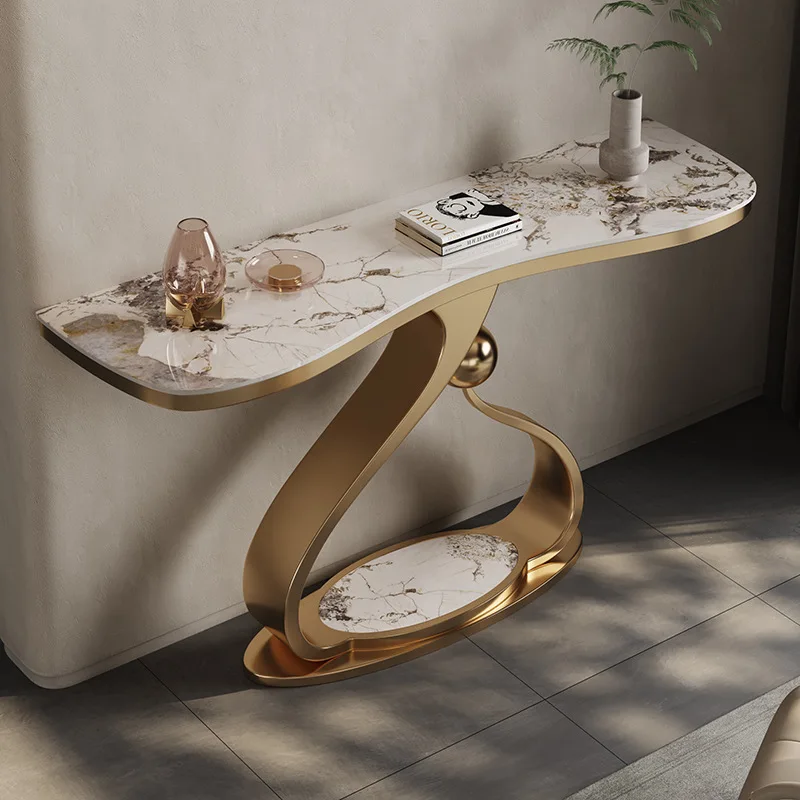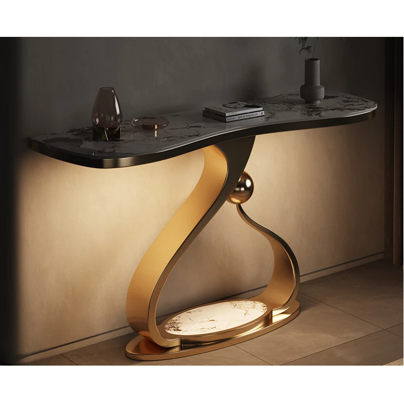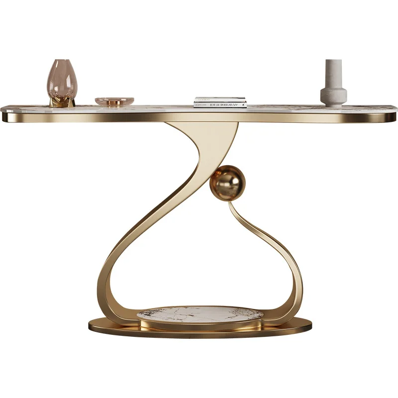 Light luxury style stainless steel rock panel porch table modern art console table