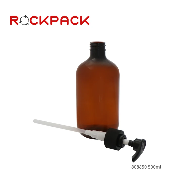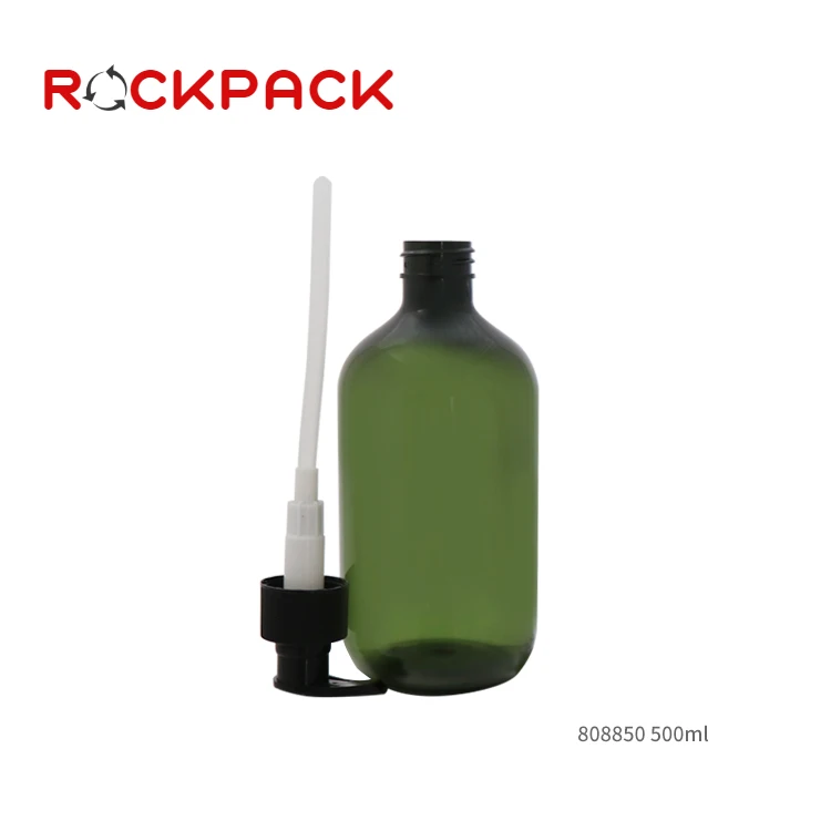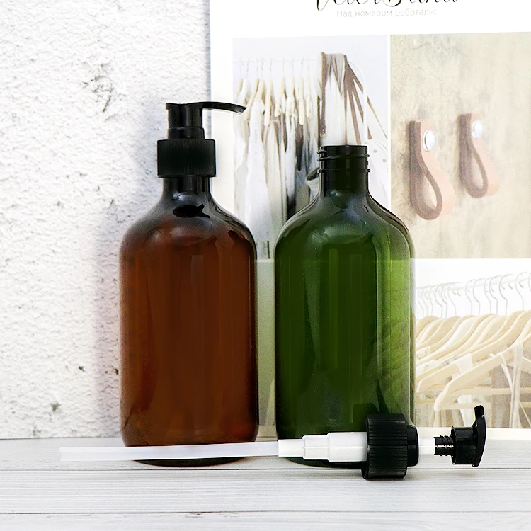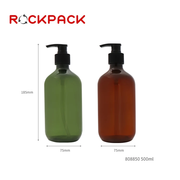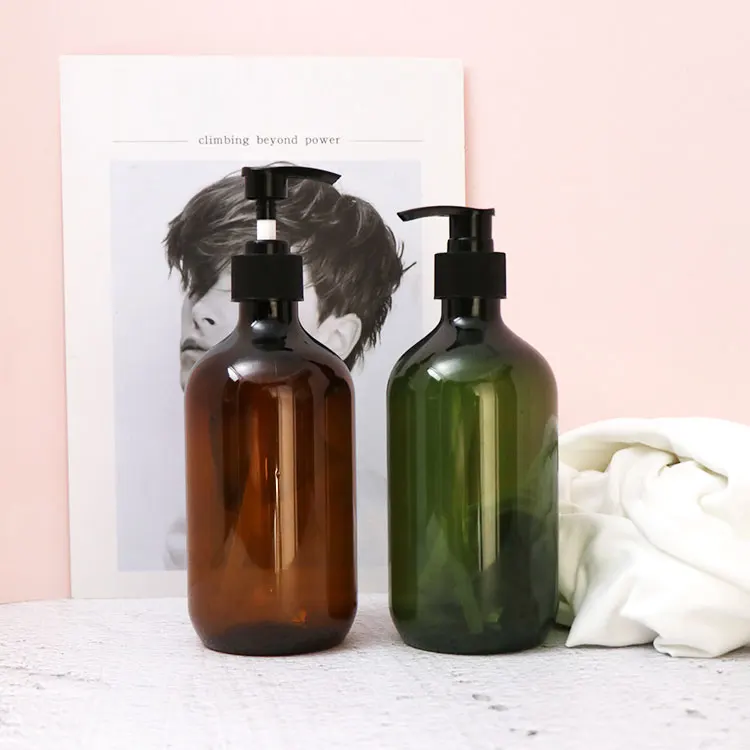 500ml Amber Green PET Plastic Amber Boston Round Empty Shampoo Pump Bottles