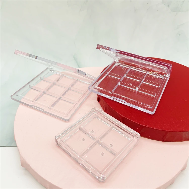 Square AS material clear empty eyeshadow palettes case 9 colors transparent eye shadow case packaging