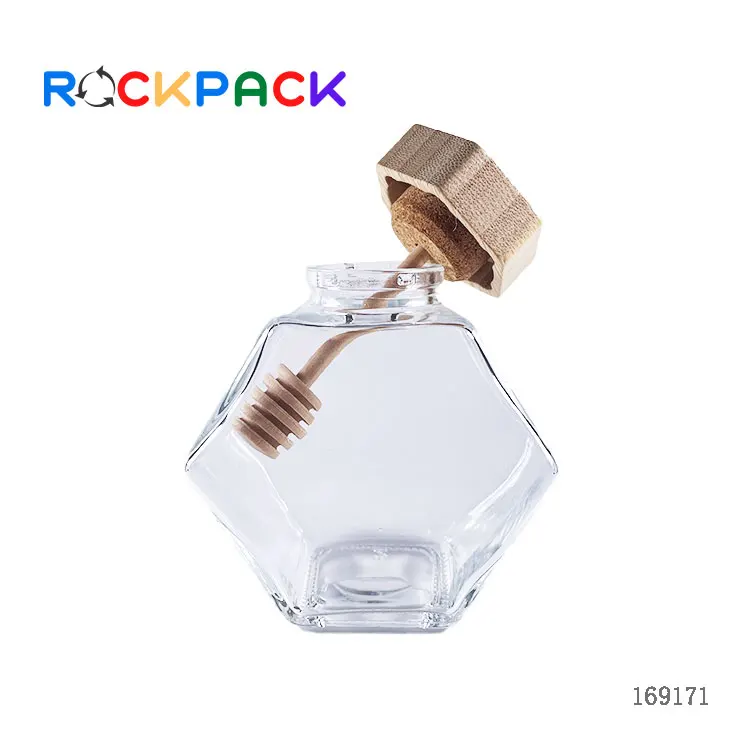Empty Honey Glass Jar Honey Container With Bamboo Wooden Dipper