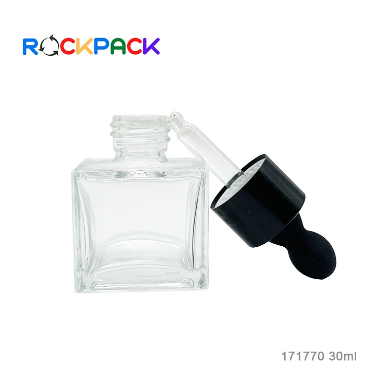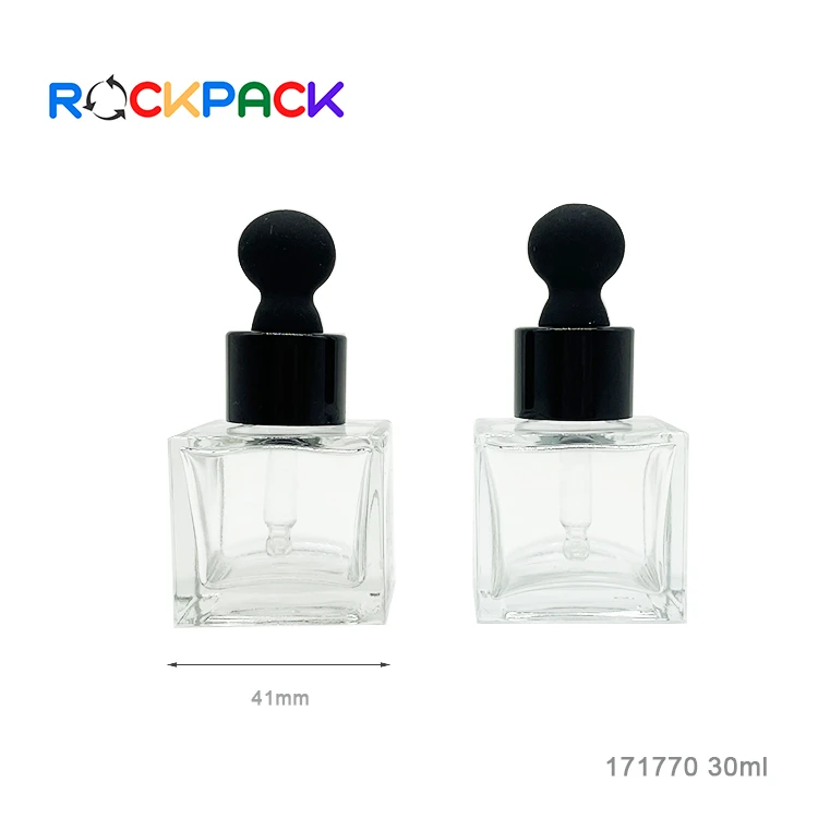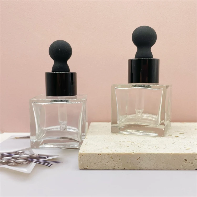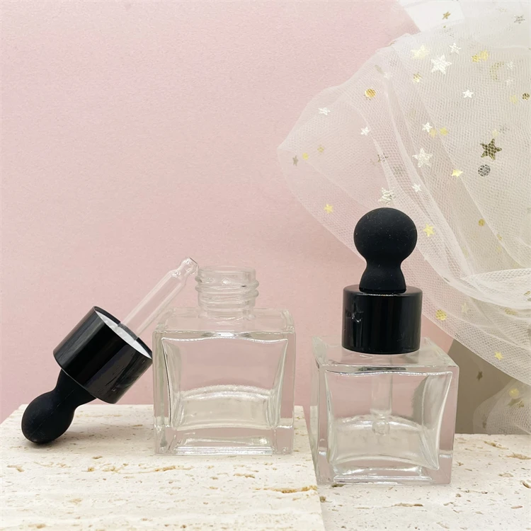 30ml Square shape transparent glass skin care essential oil glass bottles