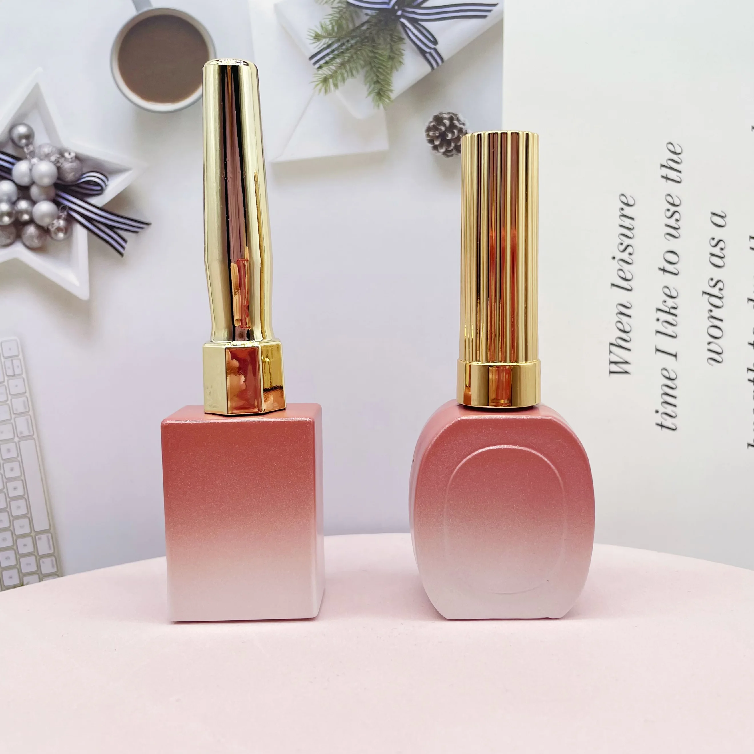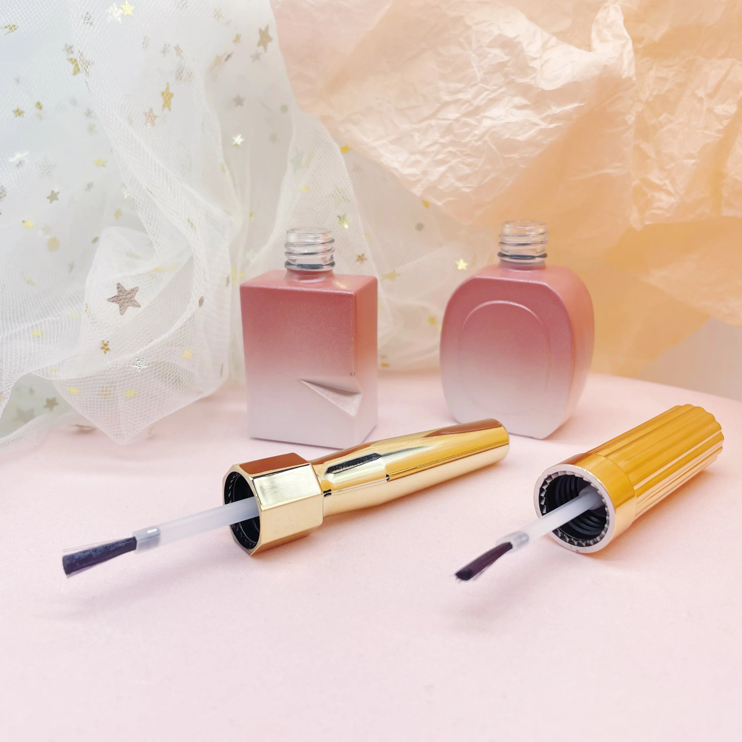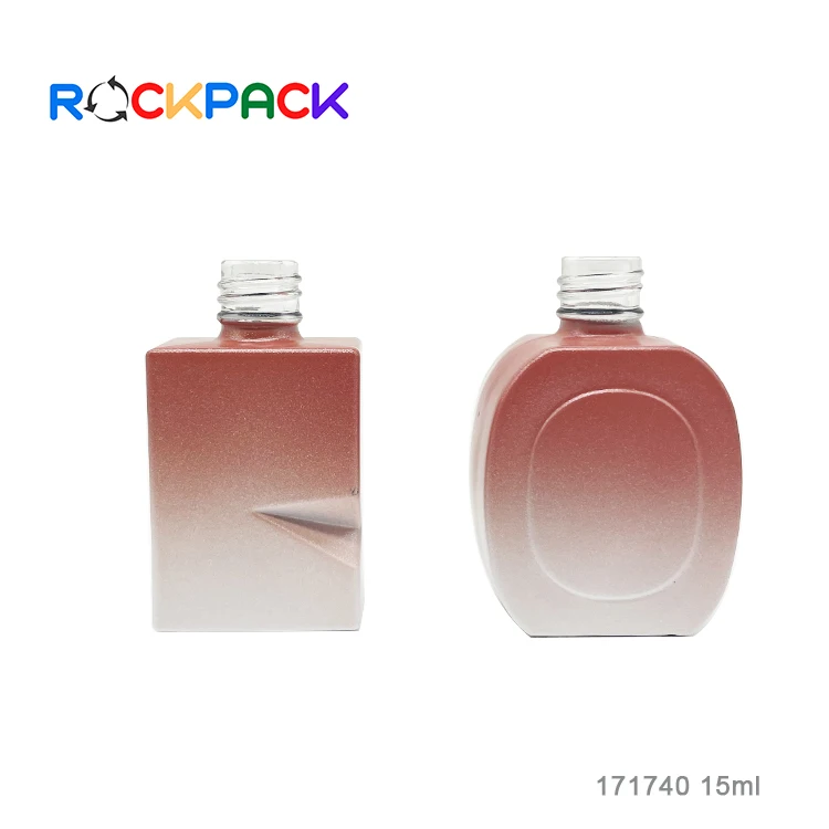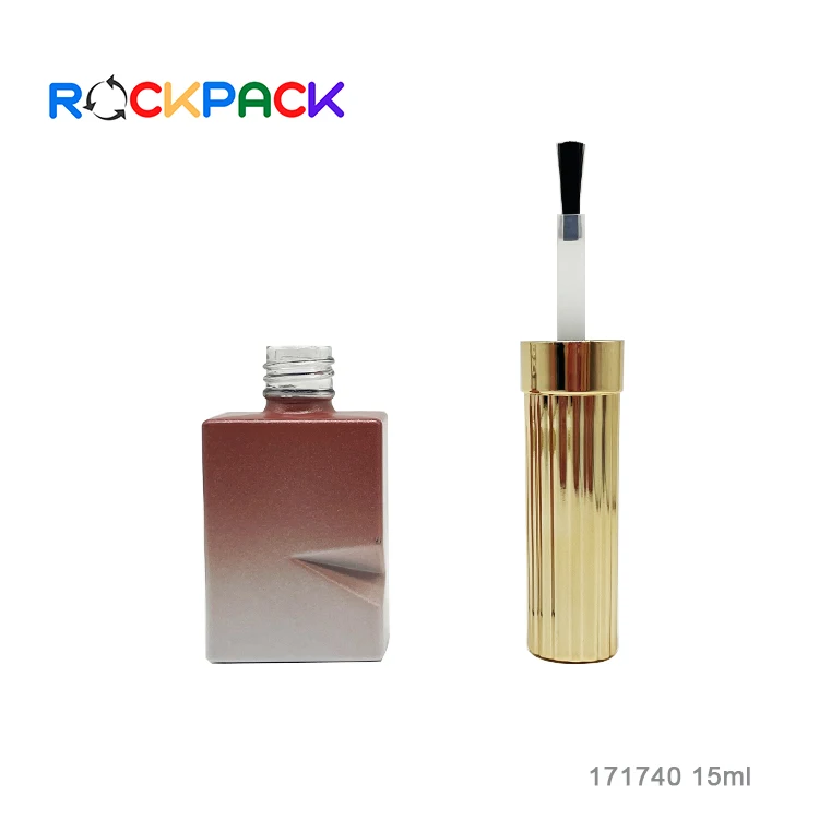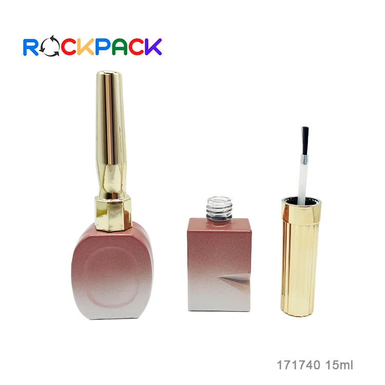 Factory made cosmetic packaging round shape grasient pink empty 15ml nail polish bottles with brushes