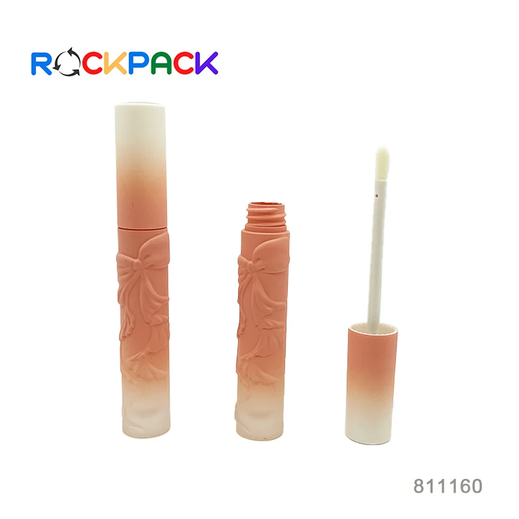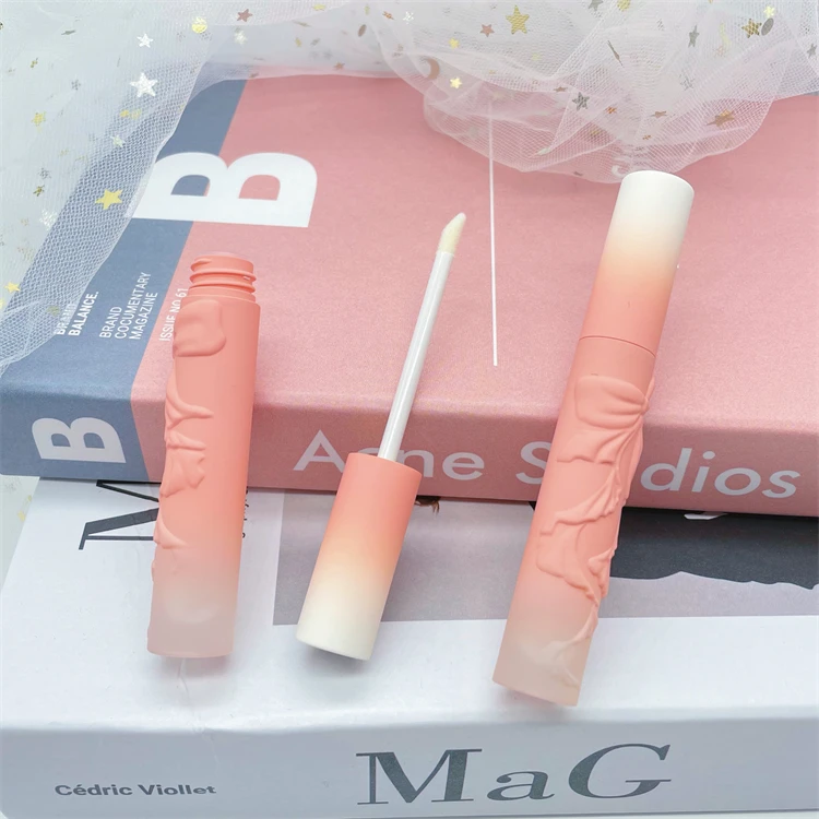 5ml Gradient pink color lipgloss plastic recycled plastic lip balm tubes with bow pattern
