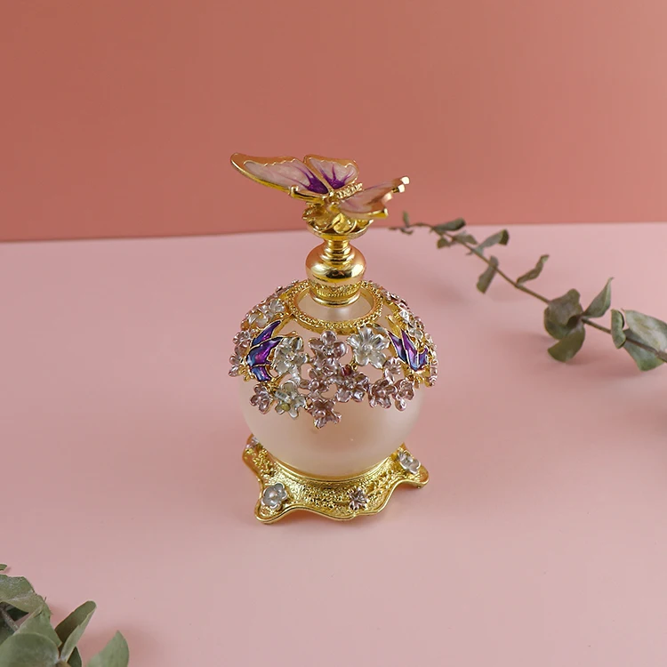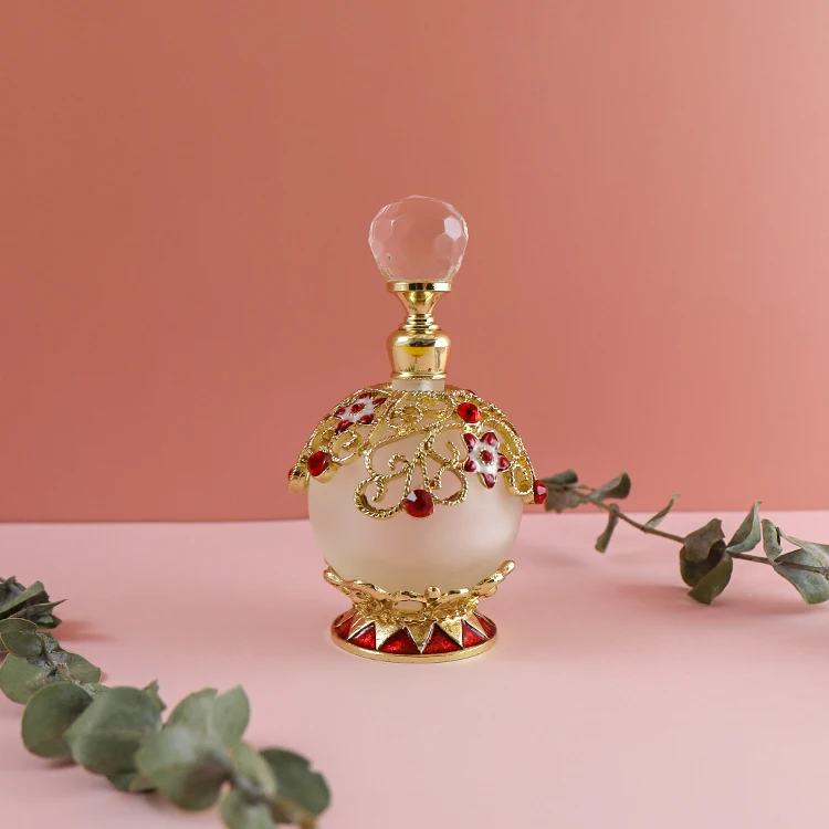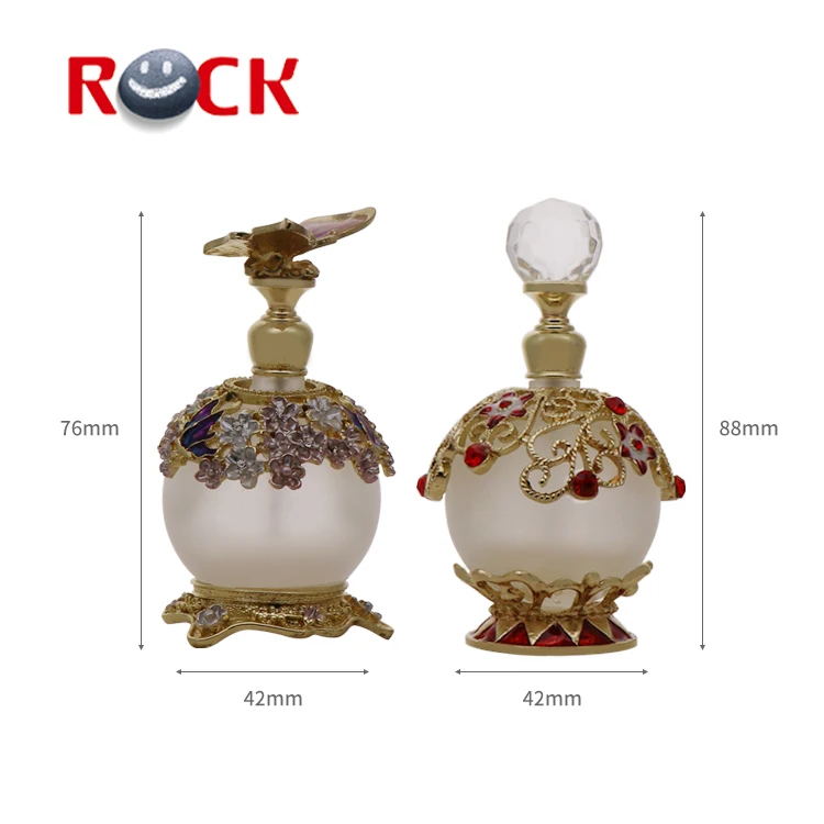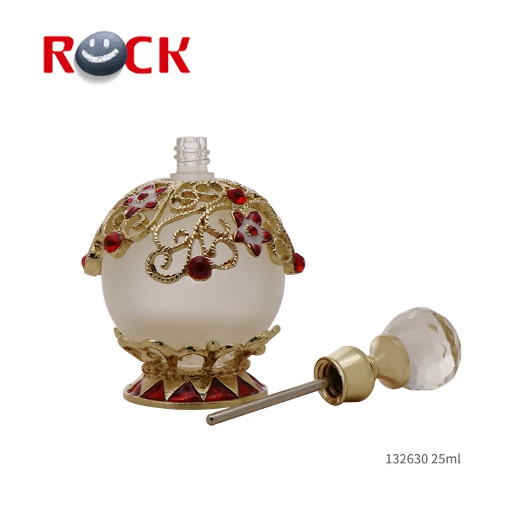 25ml Unique Arabic Style Metal Essential Oil Attar Perfume Glass Bottles with Glass Stick