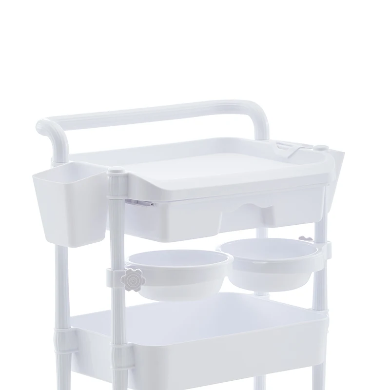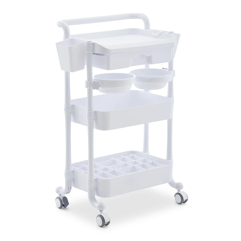 Factory Direct Supply Beauty Massage Manicure Salon Trolley Luxury Salon Furniture Plastic Handcart 3 Layer Shelf with Wheels