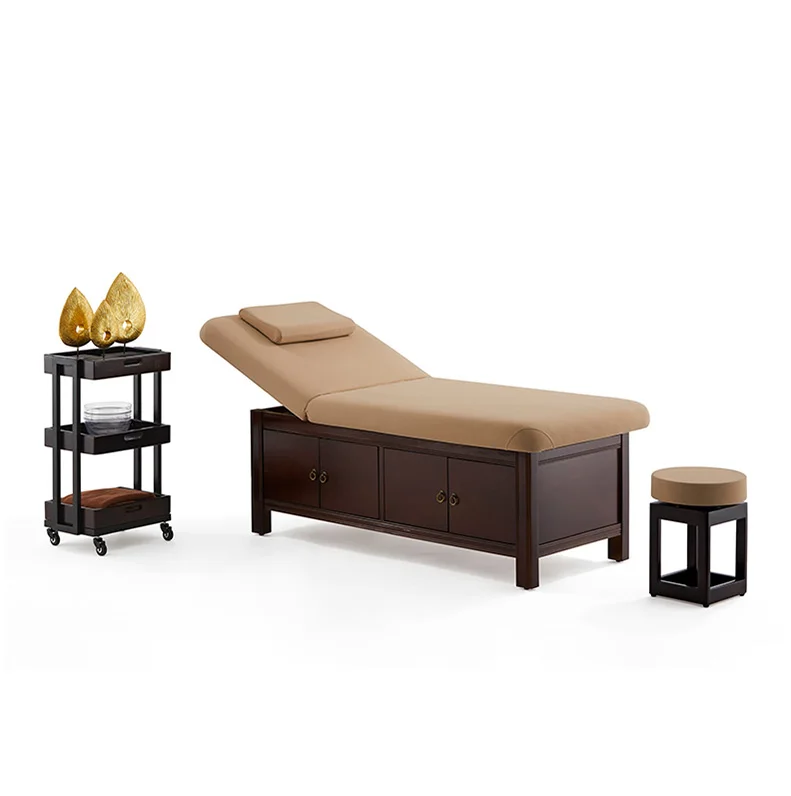 New Spa Portable Wooden Beauty Massage Bed Beauty Face Bed with Storage Cabinet