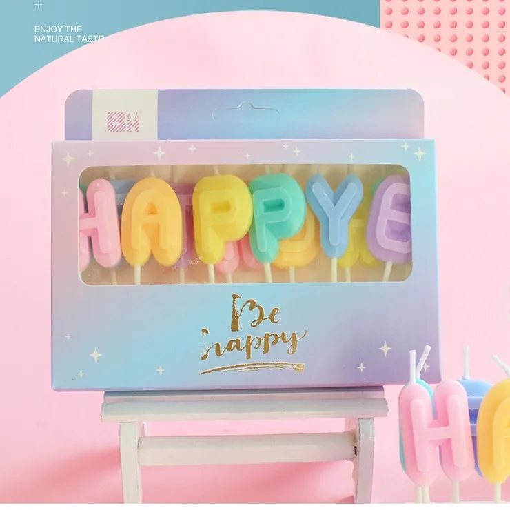 Colorful Alphabet Candle in Happy Birthday Macaron Box for Party and Photo Booth Props