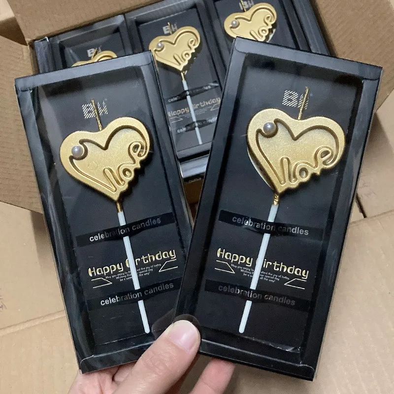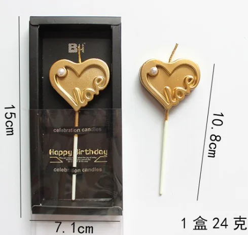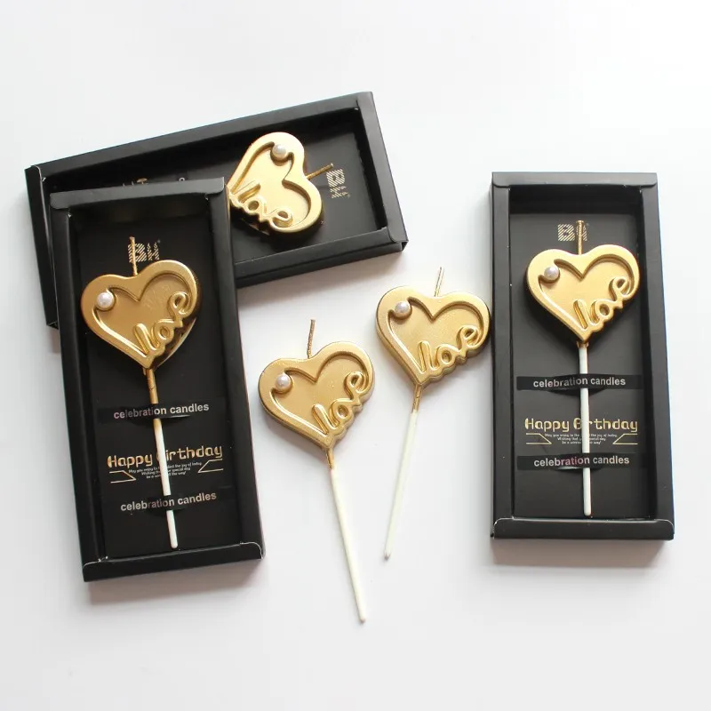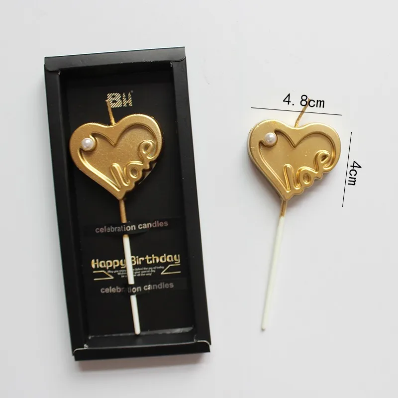 Beautifully Packaged Gold-Plated Heart Pearl Birthday Candle LOVE Alphabet Cake Decoration Photo Booth Props