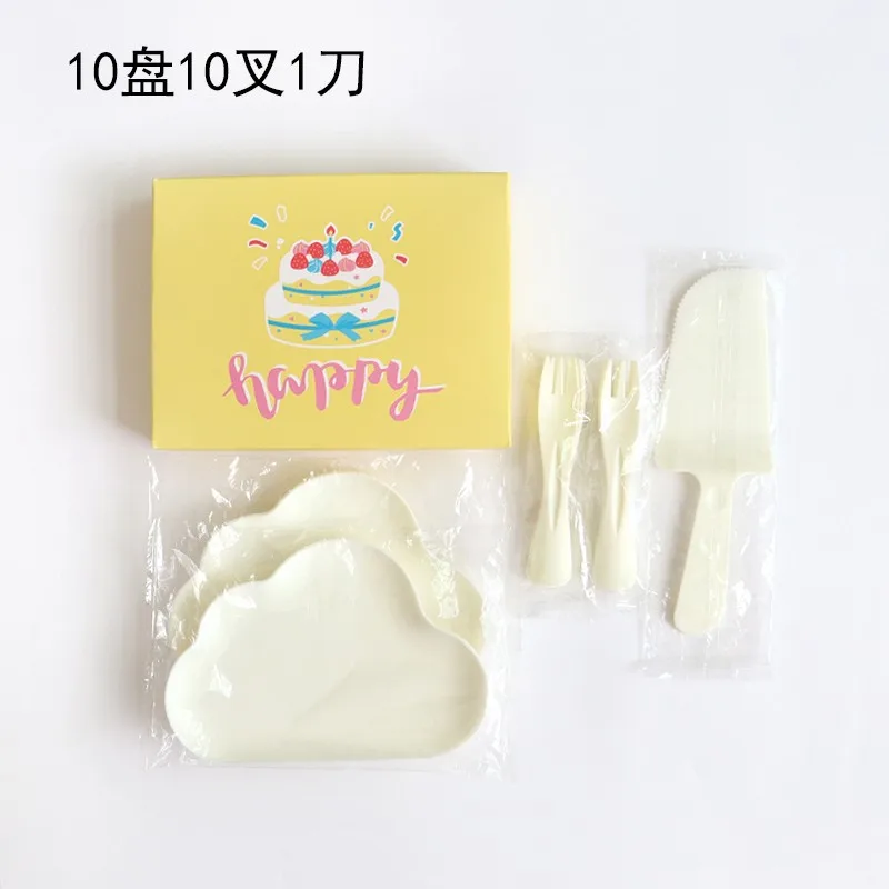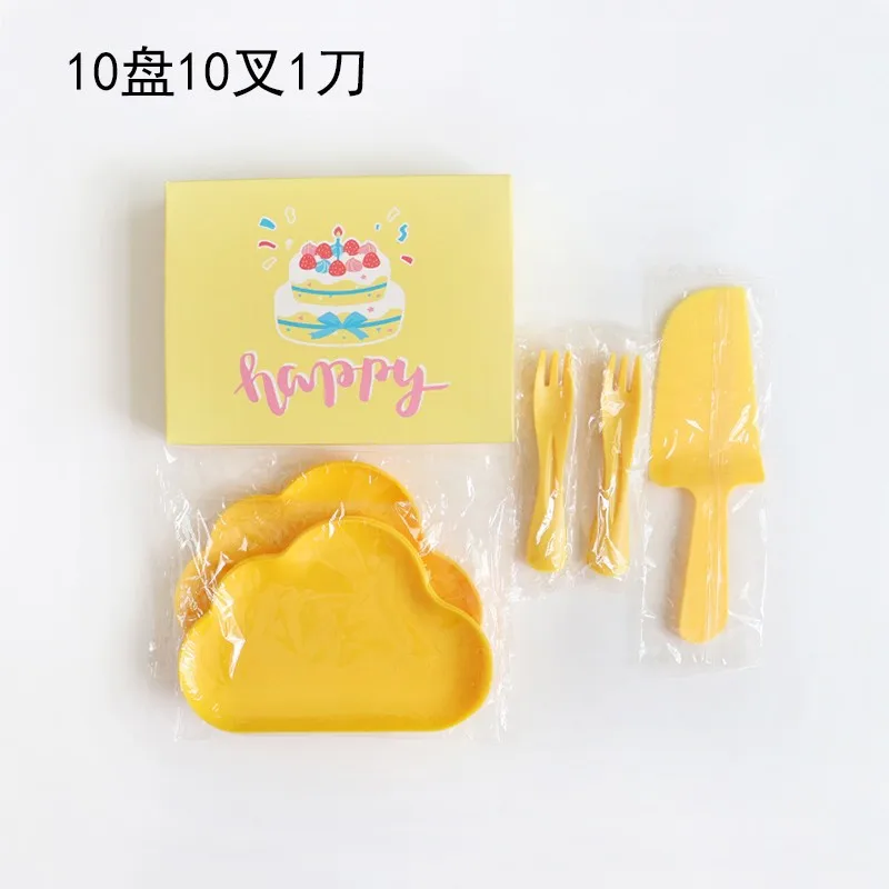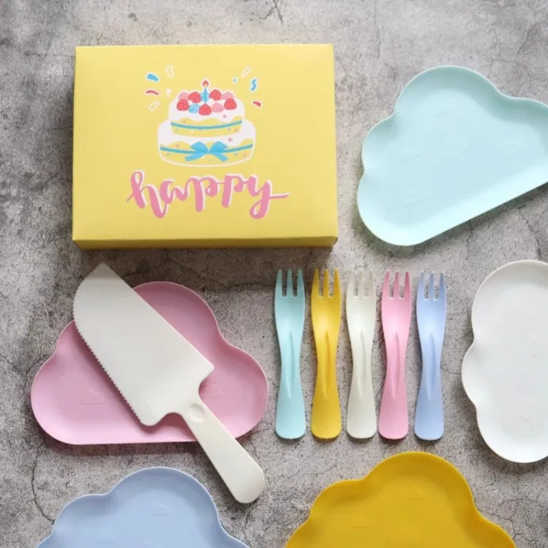 Birthday Cake-Themed Disposable Plastic Plate Dinner Plate with Baking Water Drops Cloud Design for Parties Special Occasions