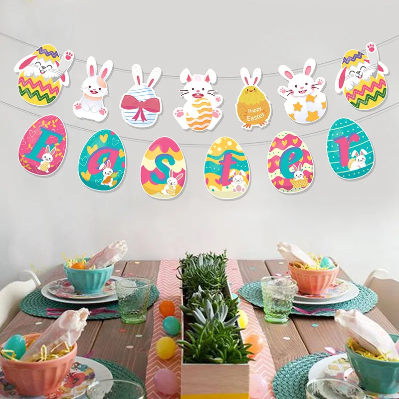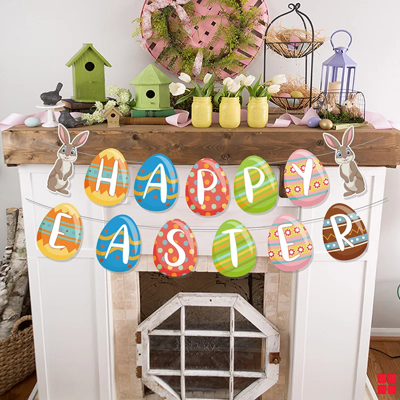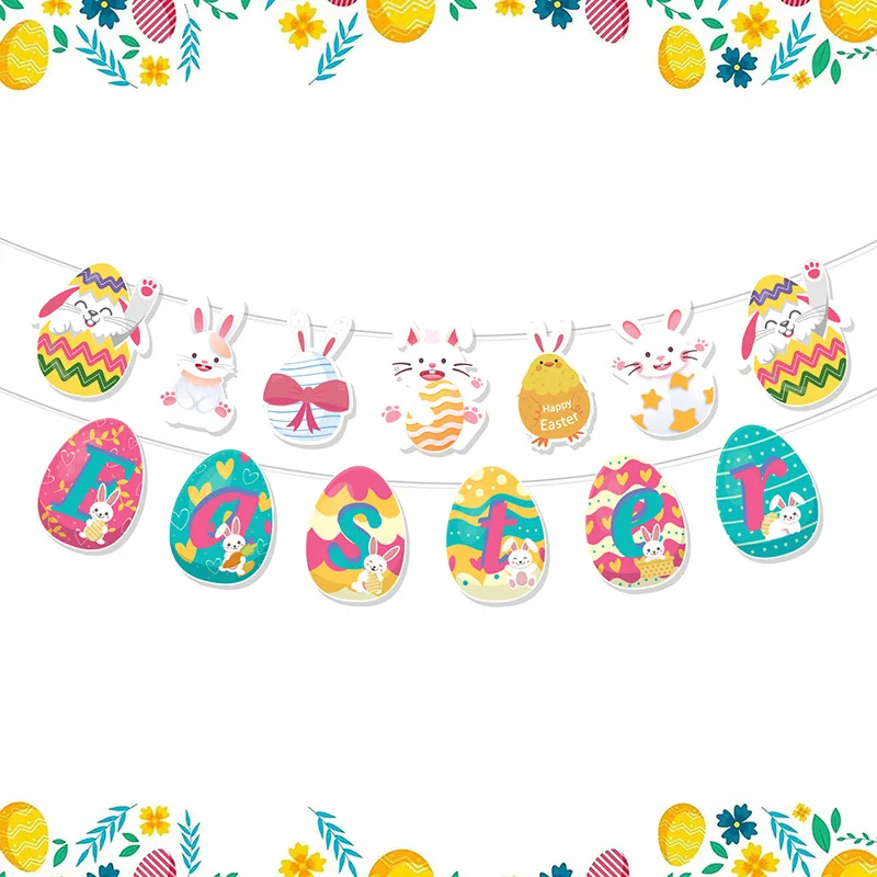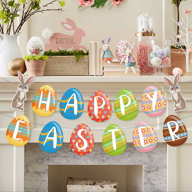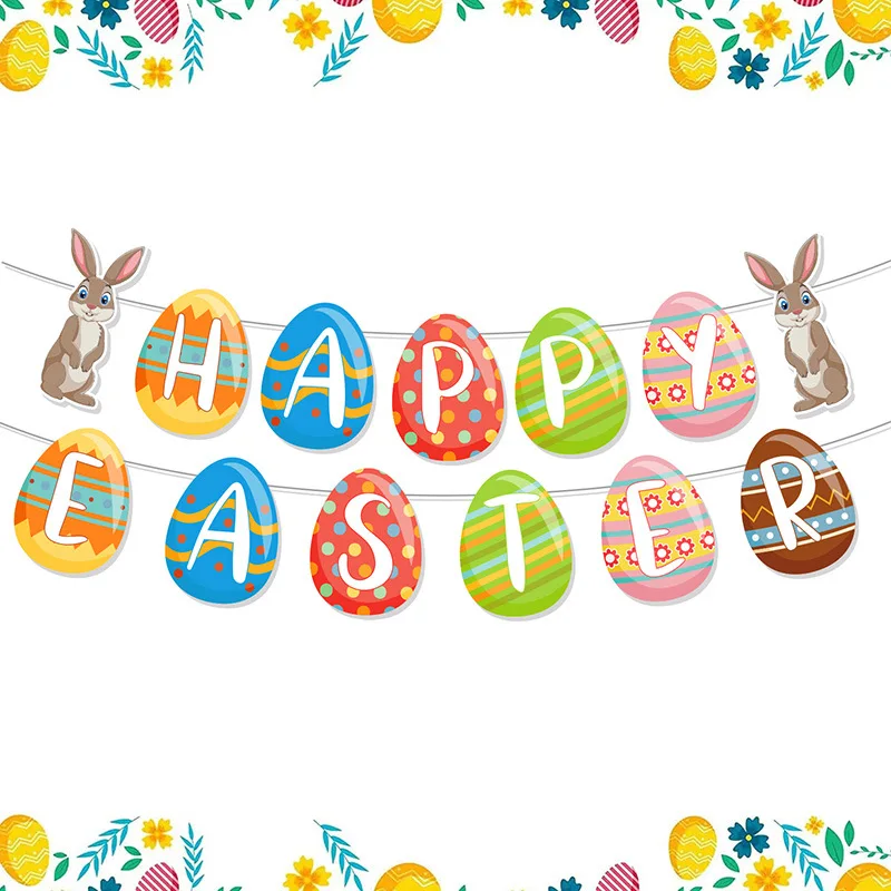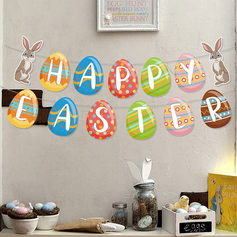 Easter Theme Festive Supplies Bunny Happy Easter Eggs Flag Pull Banner Party Decoration Props