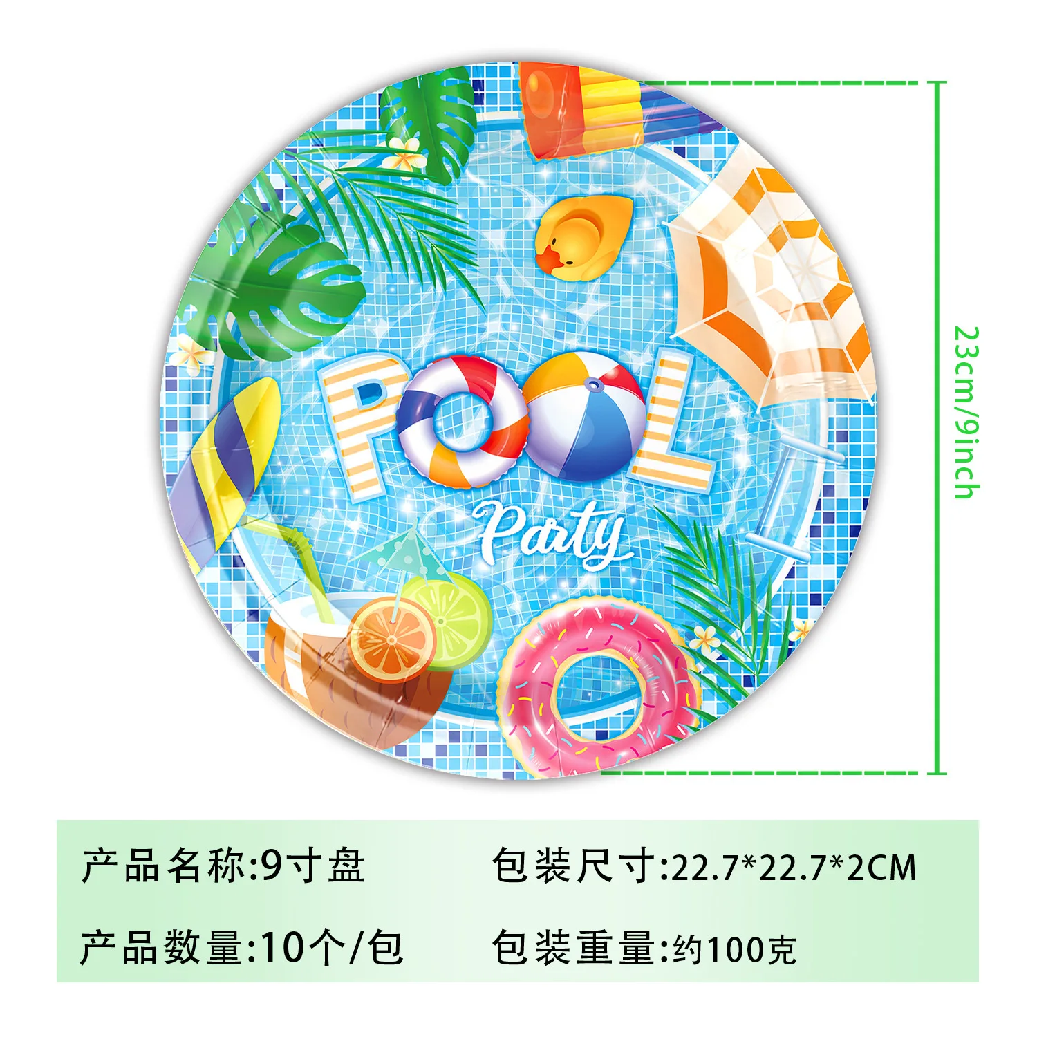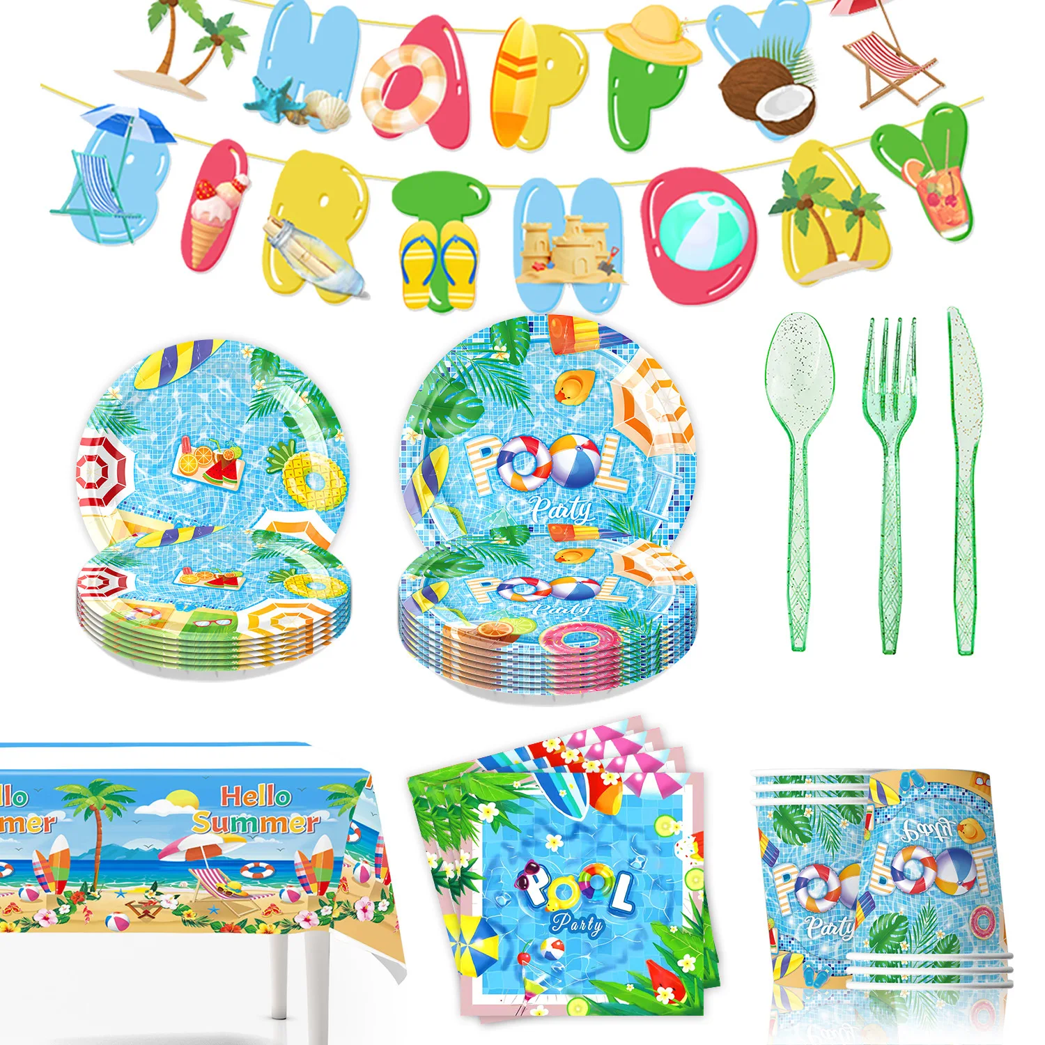 New Colorful Summer Pool Theme Birthday Party Decoration Tableware Paper Plate, Paper Cup, Paper Towel, Venue Decoration Set