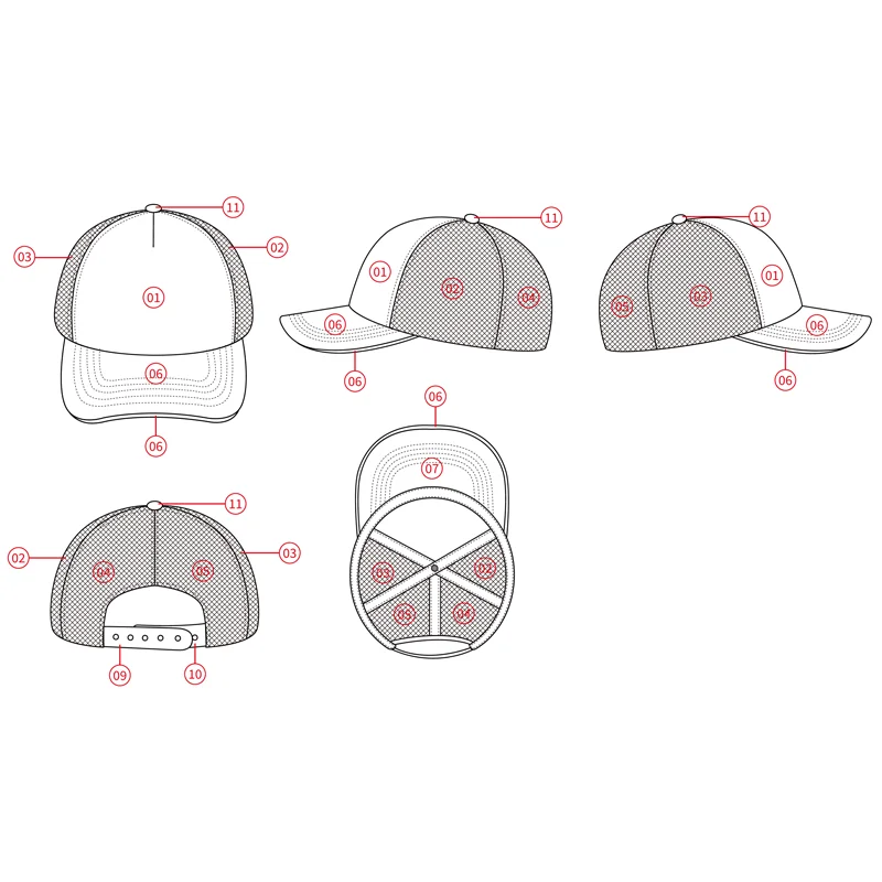 3.Material | foam+mesh, custom | custom material: BIO-washed cotton, heavy weight brushed cotton, pigment dyed, Canvas, Polyester, Acrylic and etc. | |
