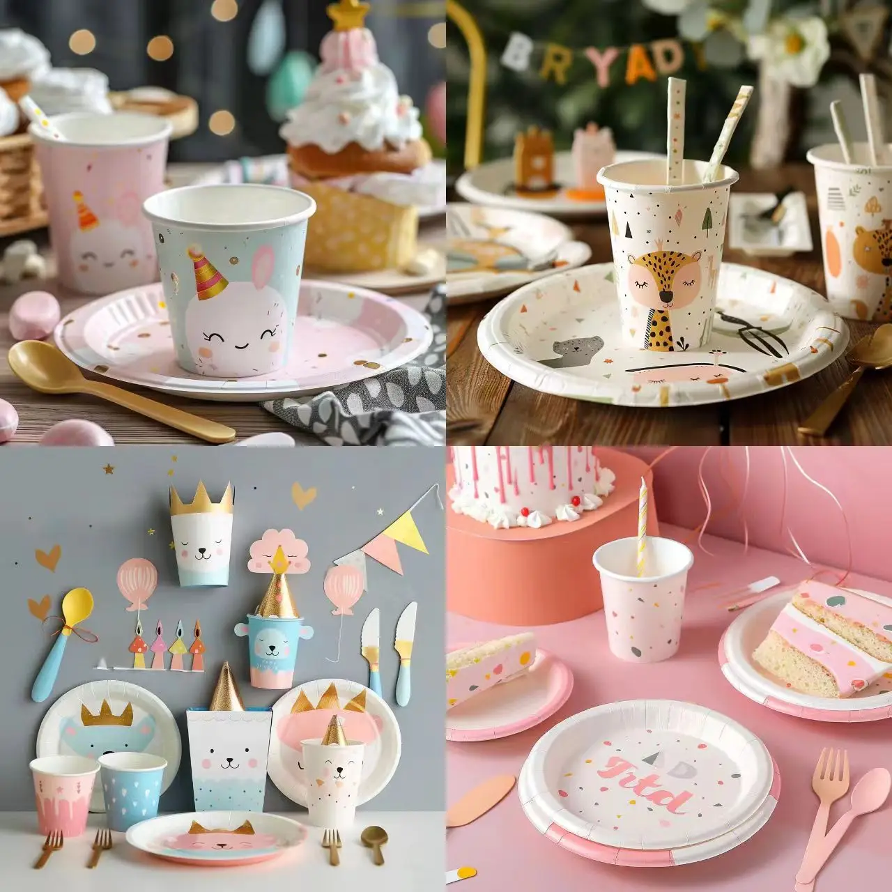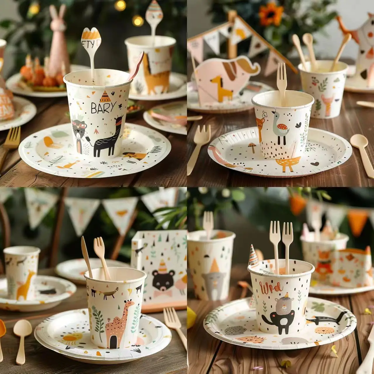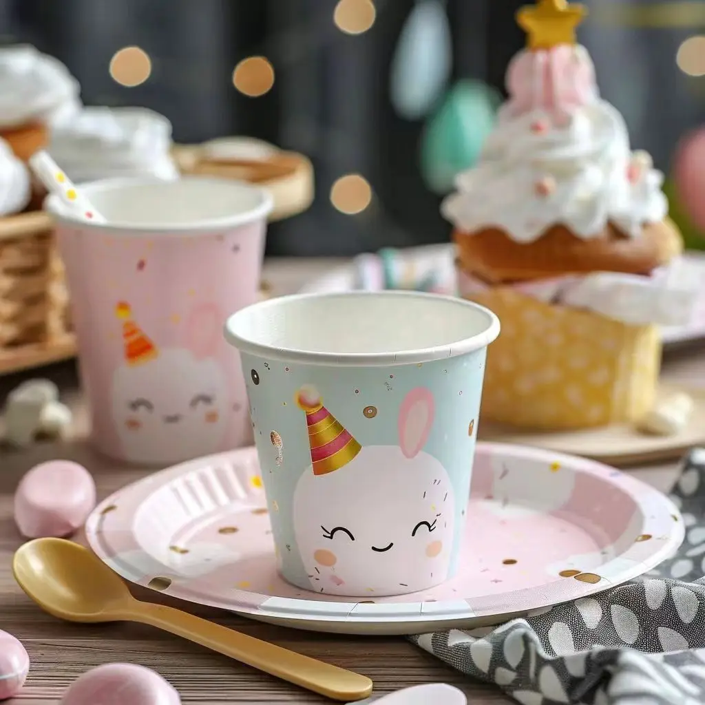 Custom Party Tableware Paper Round Party Supplies Dinner Plate Disposable White Cardboard Plate Paper Cup Customization