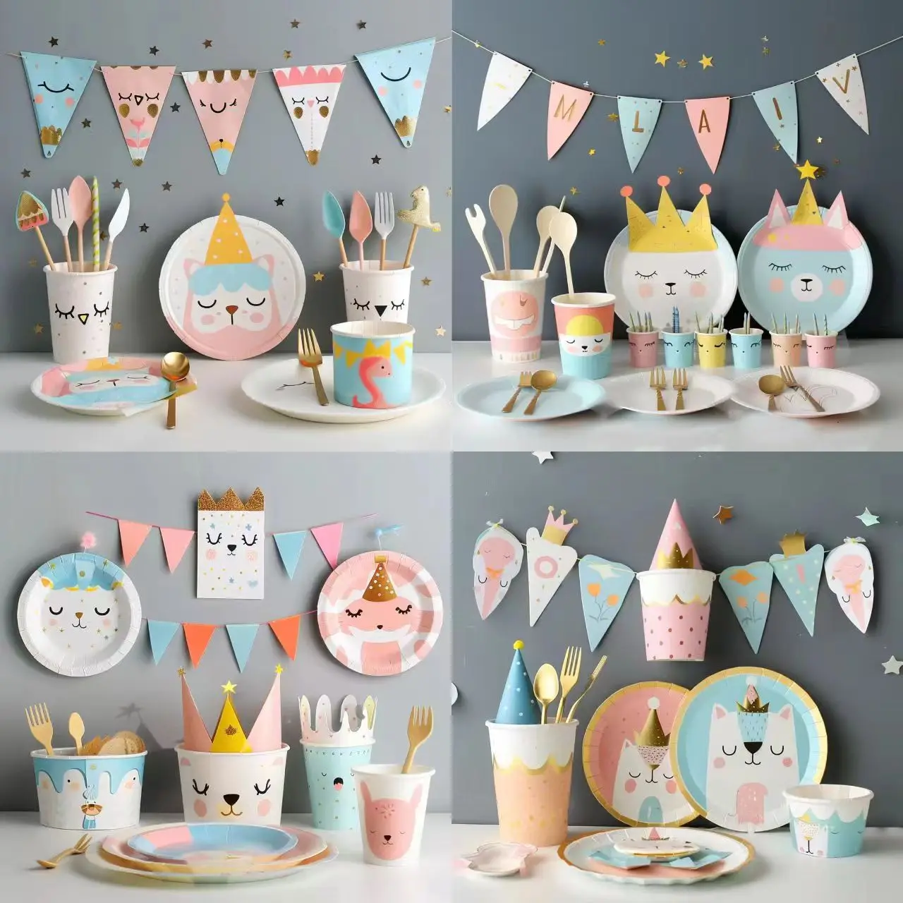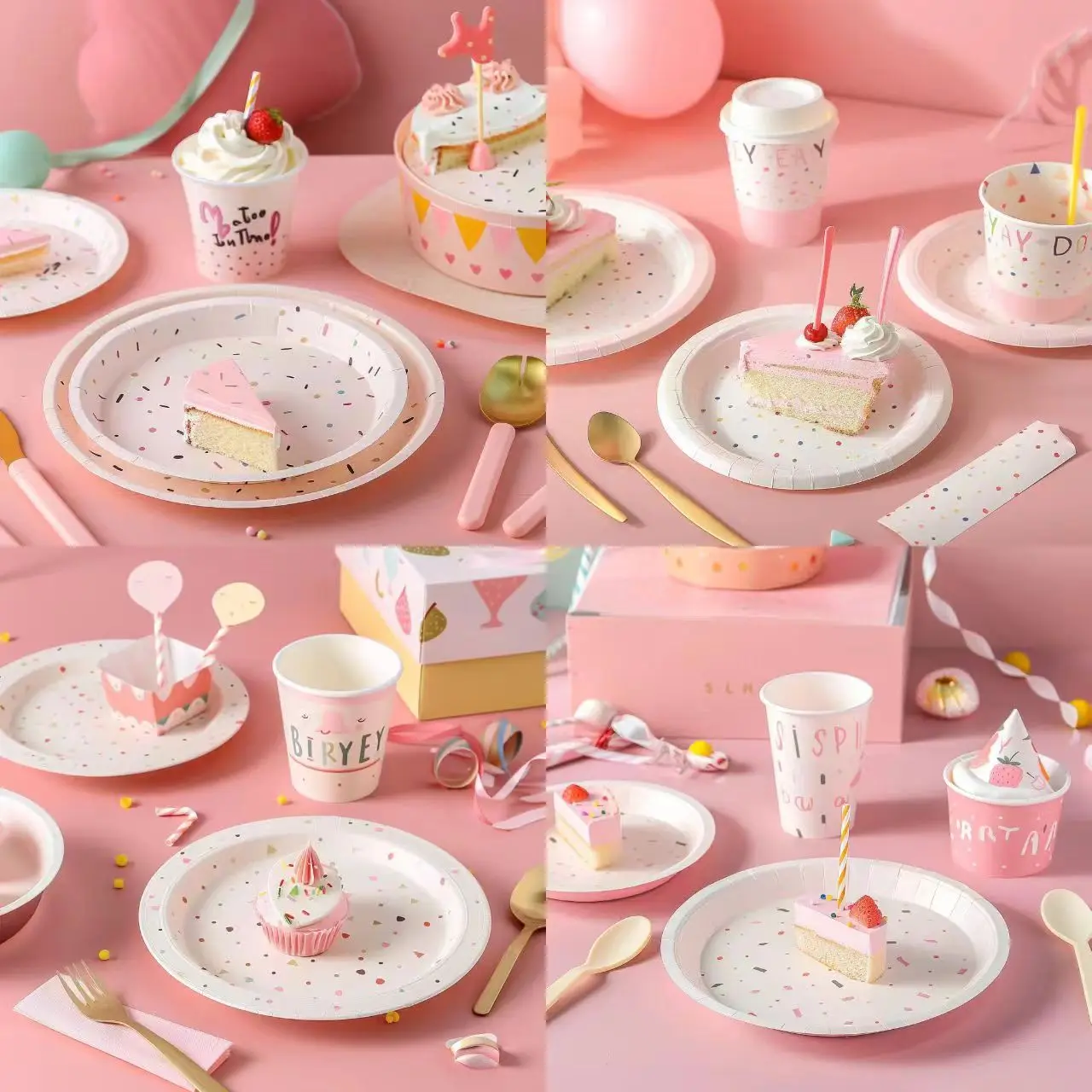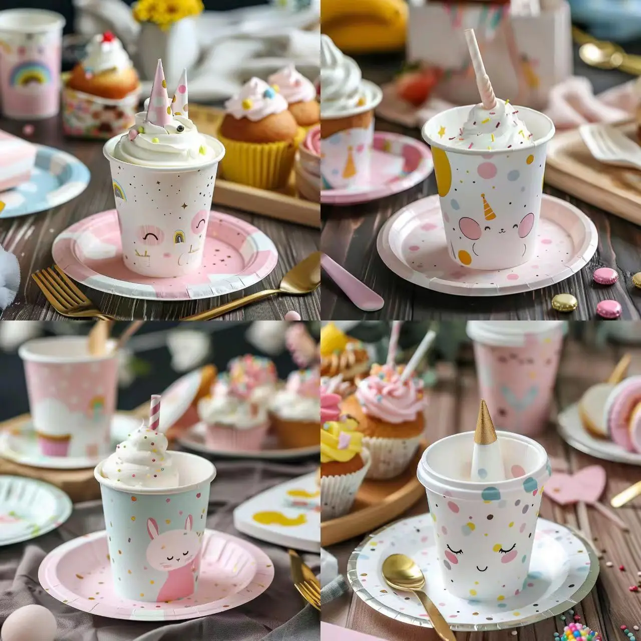 Custom Party Tableware Paper Round Party Supplies Dinner Plate Disposable White Cardboard Plate Paper Cup Customization