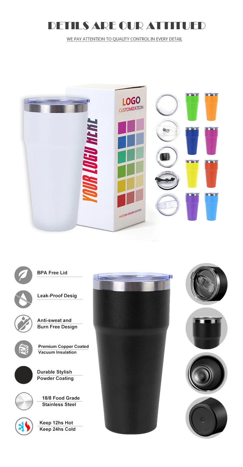 Process: We strictly control each process. According to different cup shapes, we use seamless stretched cup body or water rising process cup body, automatic environmental protection spray paint and plastic spray line, manual polishing, electrolysis, and pumping for more than 6 hours Vacuum, 3 times temperature measurement to ensure the best quality