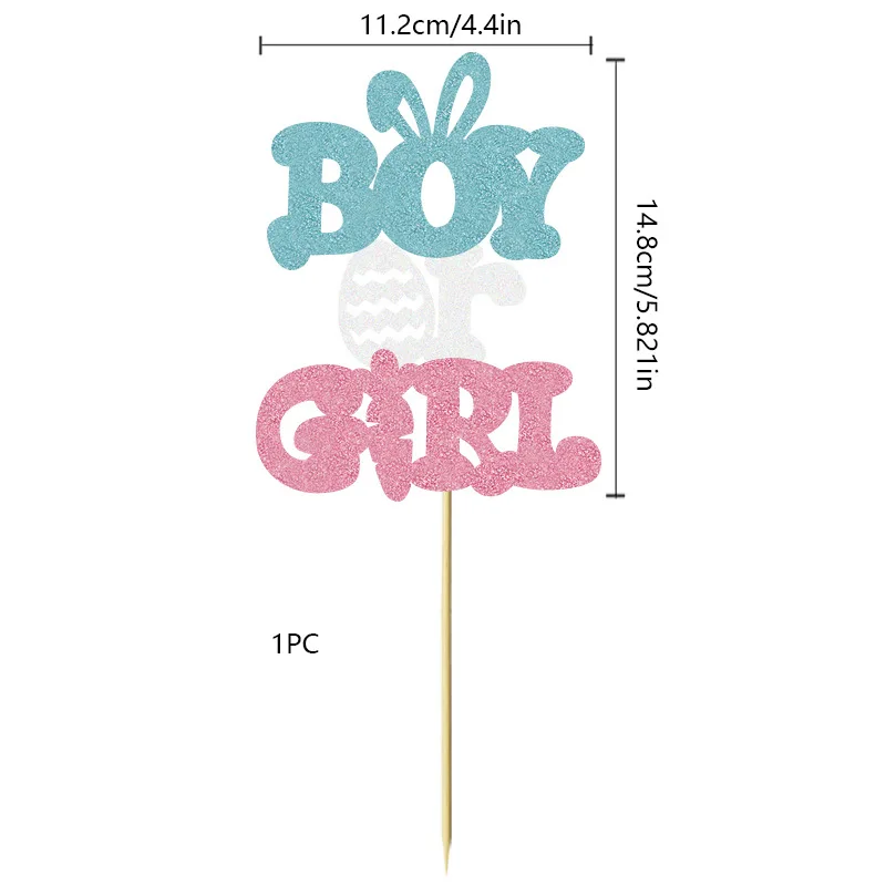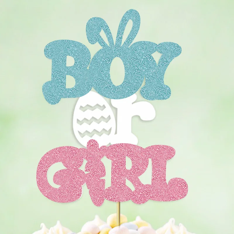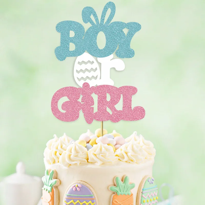 Egg Bunny Carrot Cake Topper for Boy or Girl Easter Baby Gender Reveal Party Decoration Cake Decorating Supplies