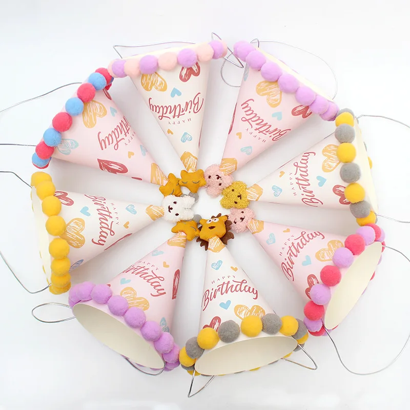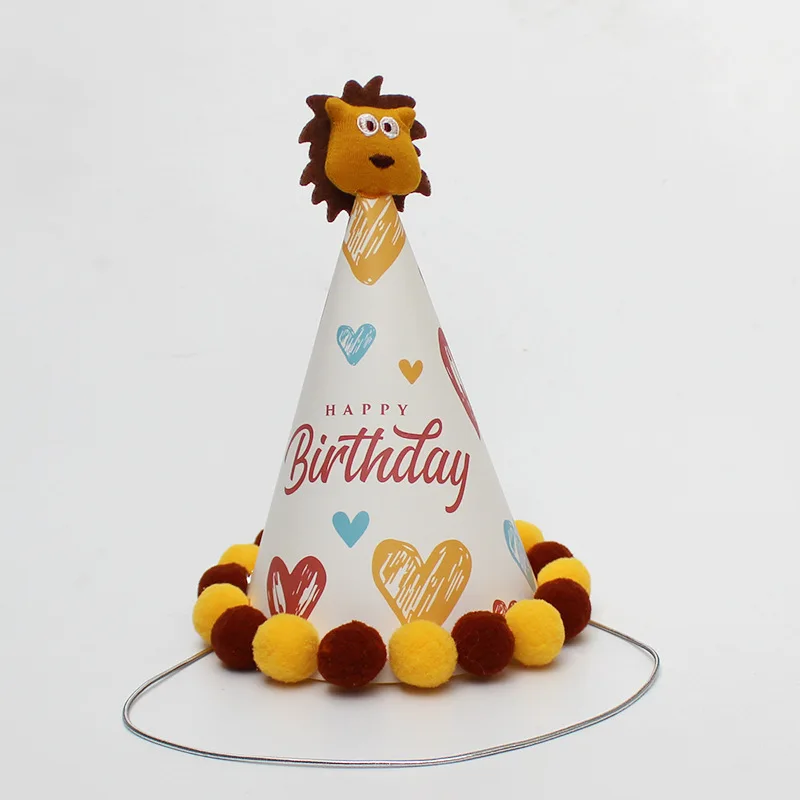 Cartoon Animal Furball Birthday Party Hat Spire Photo Booth Props Individually Wrapped