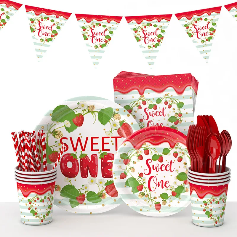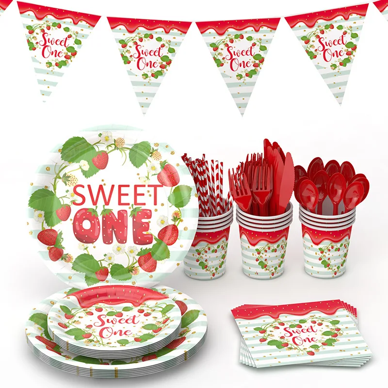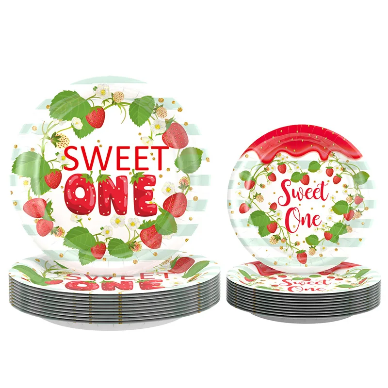 Strawberry Fruit Birthday Party Disposable Tableware Paper Plate Set Tablecloth Kids Party Decoration Supplies