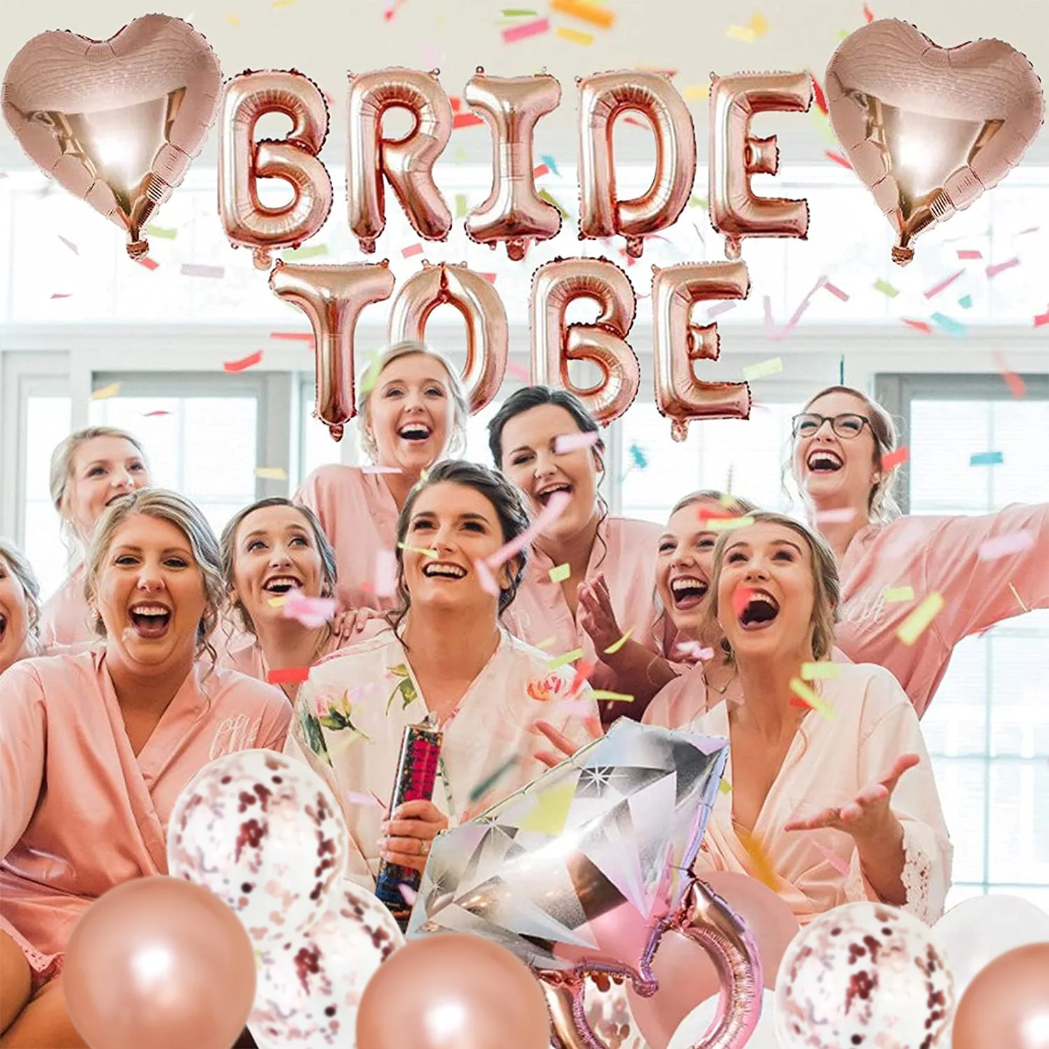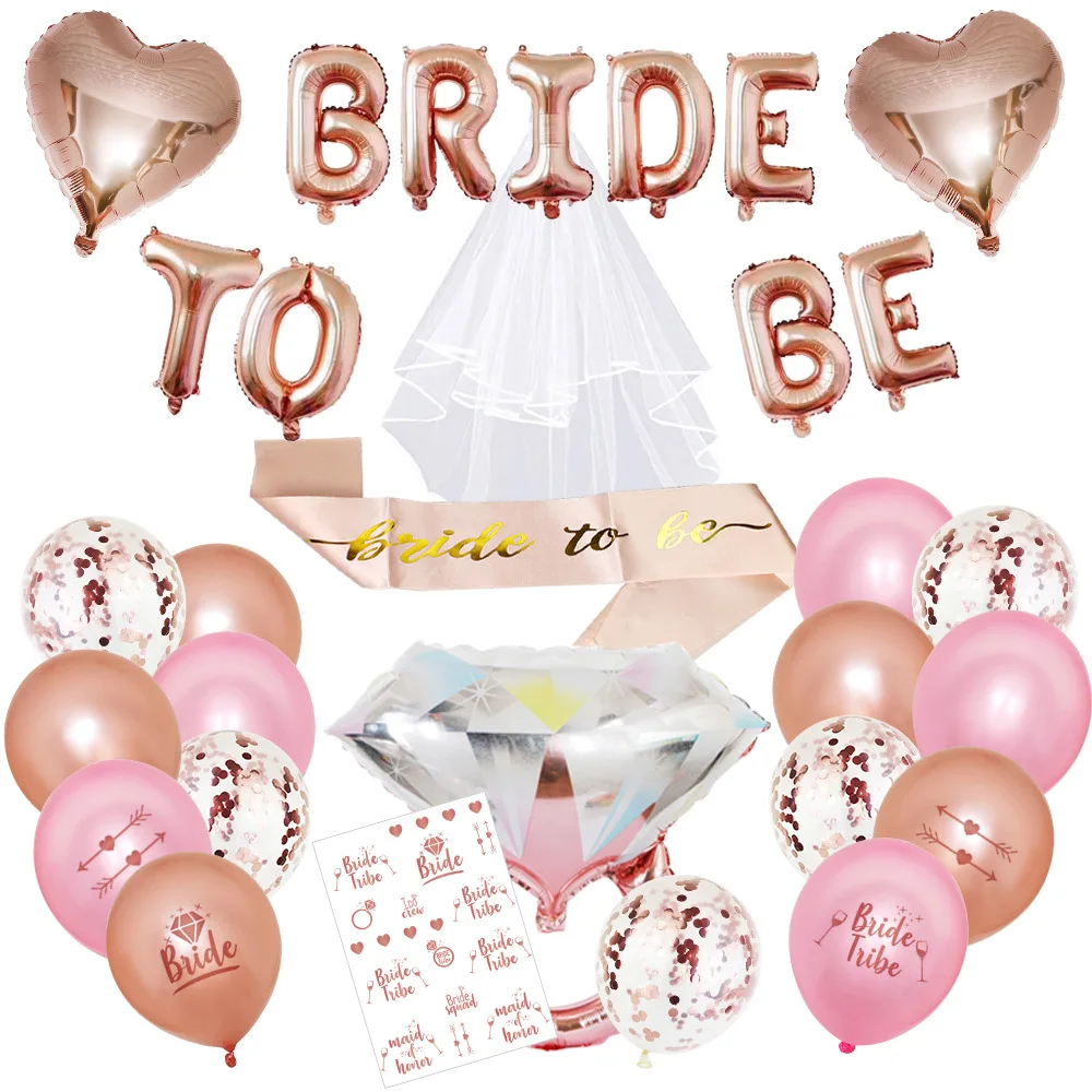 Rose Gold Bridal Party Balloon Set Bride to Be Letter Balloon Set Diamond Ring Veil
