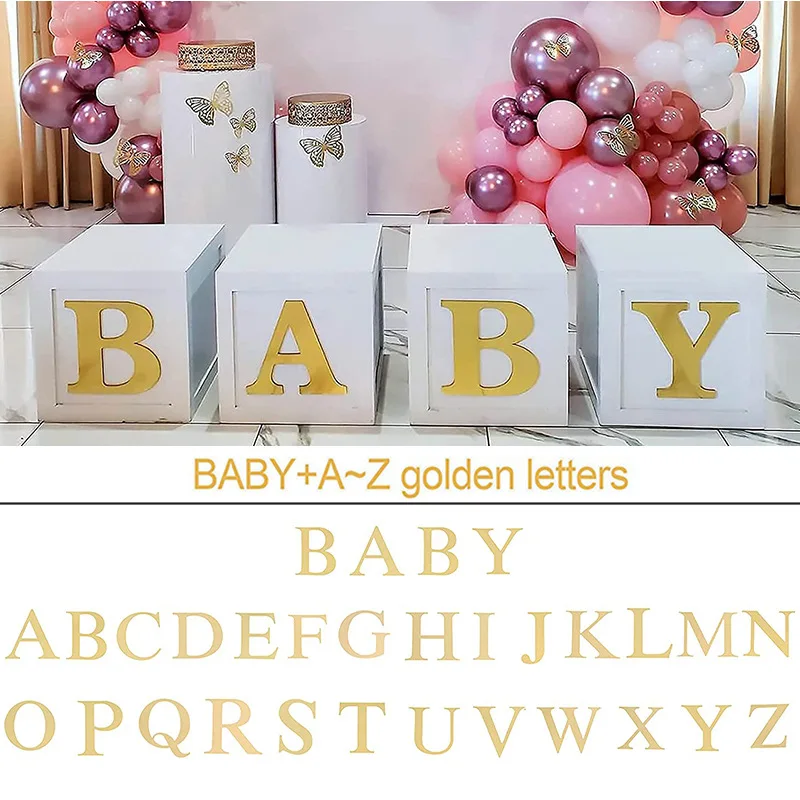 Boy Girl Gender Reveal Birthday Party BABY Big Letter Cutout Bump 3D Balloon Box