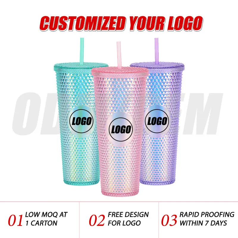 OEM Eco-friendly 24oz Plastic Tumbler BPA FREE Acrylic Water Bottle double wall plastic tumblers with straw and lids | |||