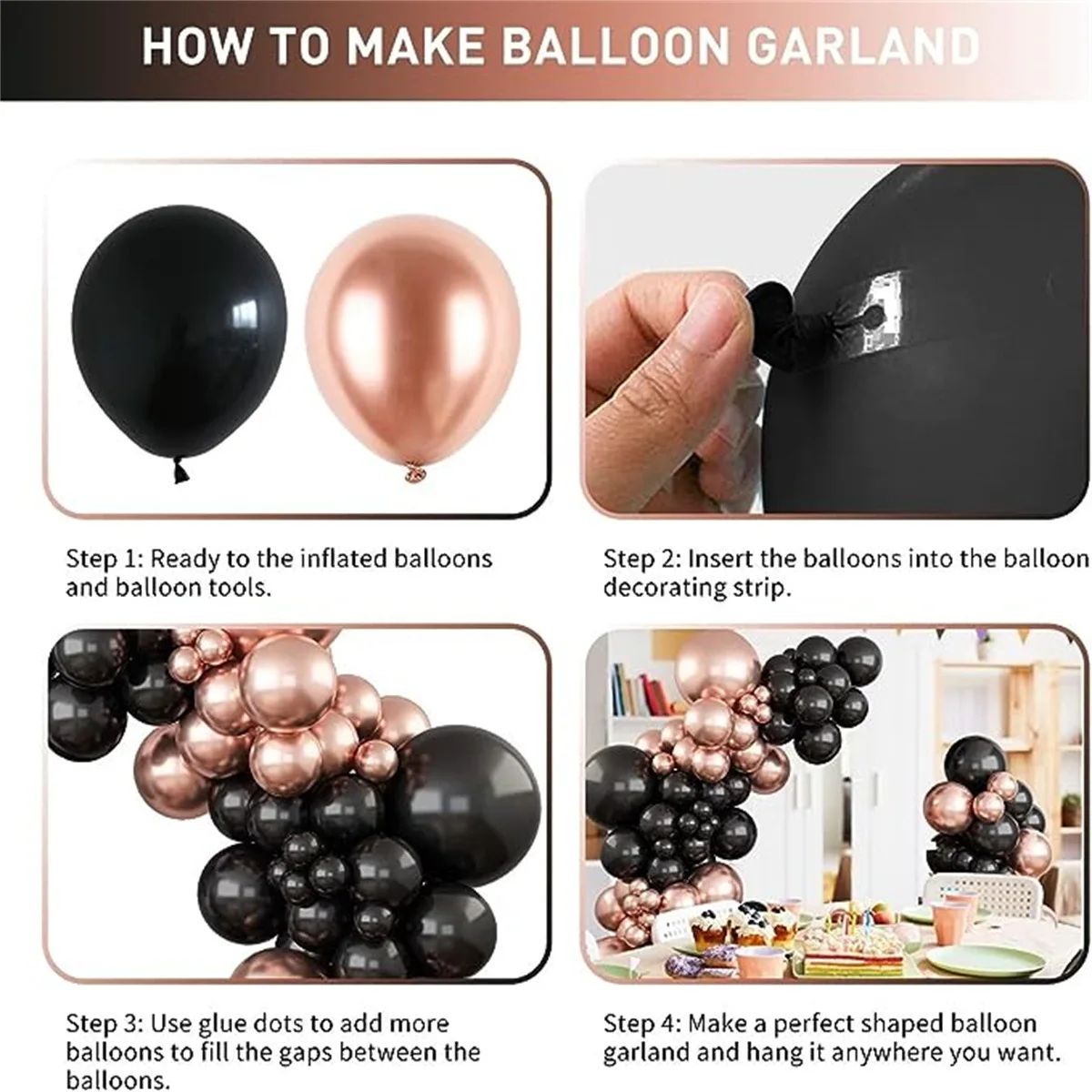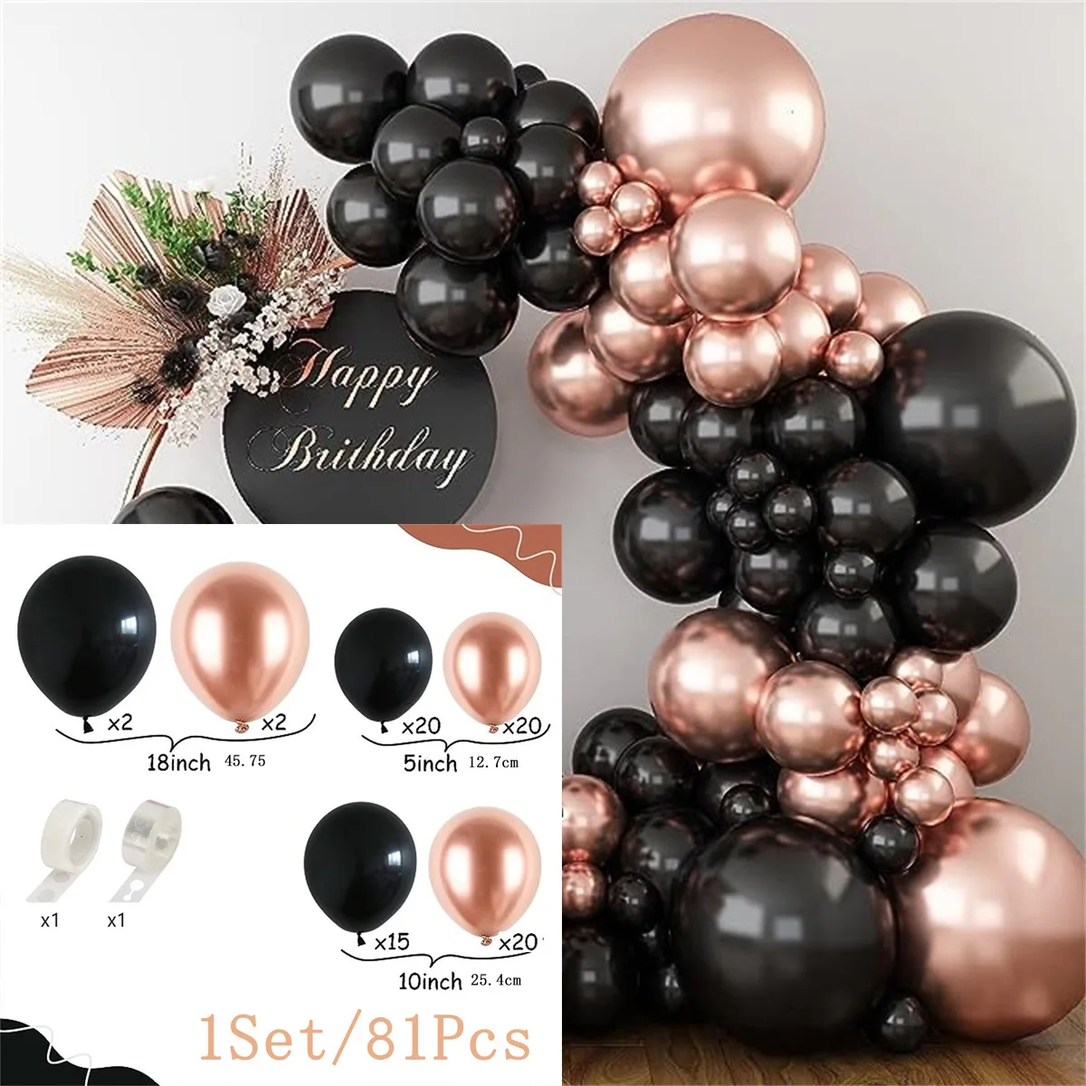 Balloon Set Birthday Themed Party Event Scene Layout Black and Gold Balloon Arch Balloon Chain