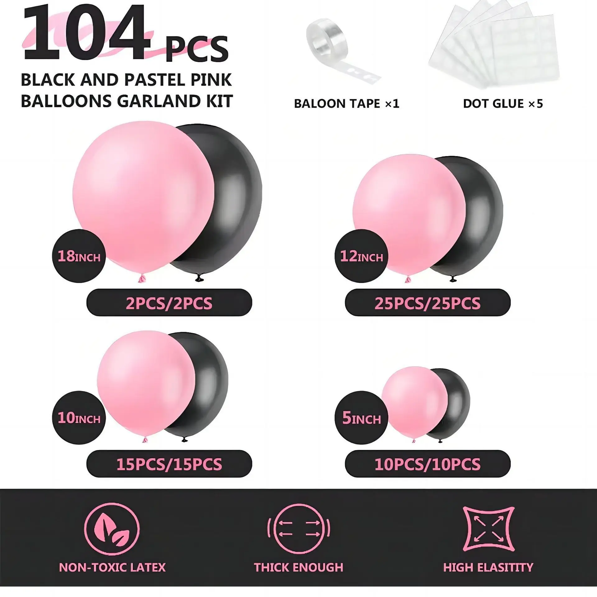 Black Pink Balloon Chain Combo Set