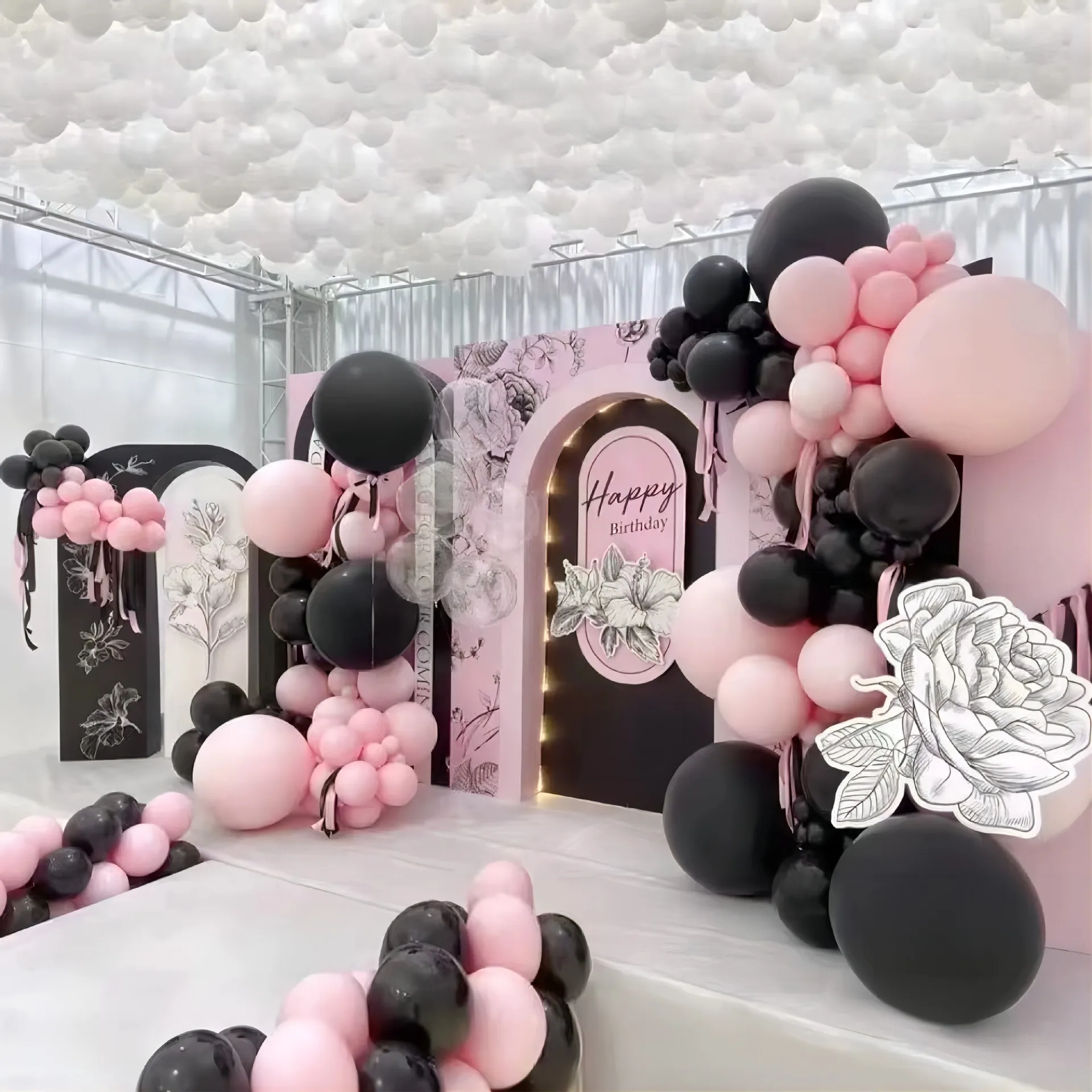 Black Pink Balloon Chain Combo Set Macaron Set Latex Balloon Birthday Party Decoration