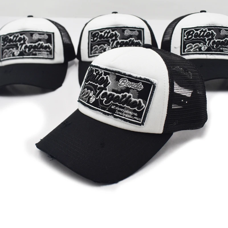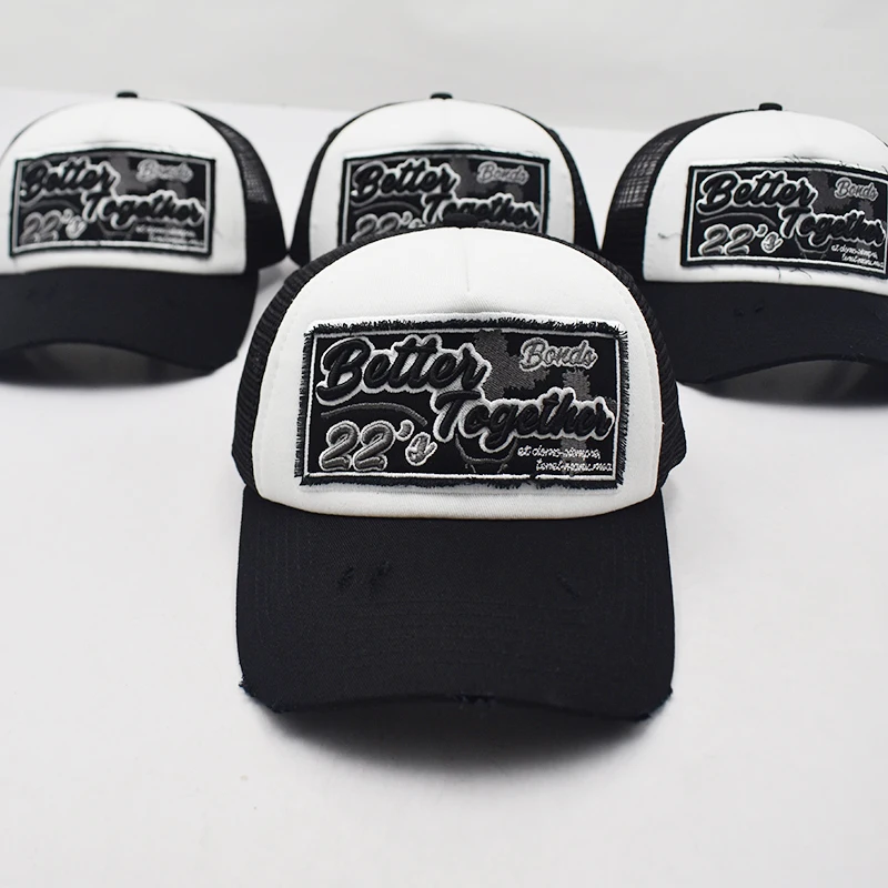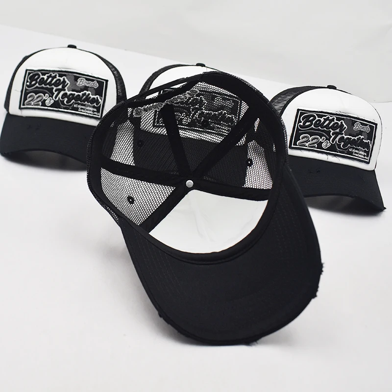 1.Product Name | Custom High Quality 5 Panel 3d Puff Embroidery Patch Logo Mesh Snap Back Truck Cap, ripped worn out Two Tone Gorras,Wholesale Trucker Hats | ||