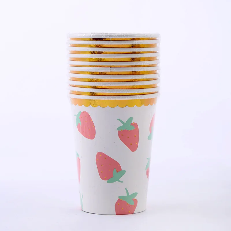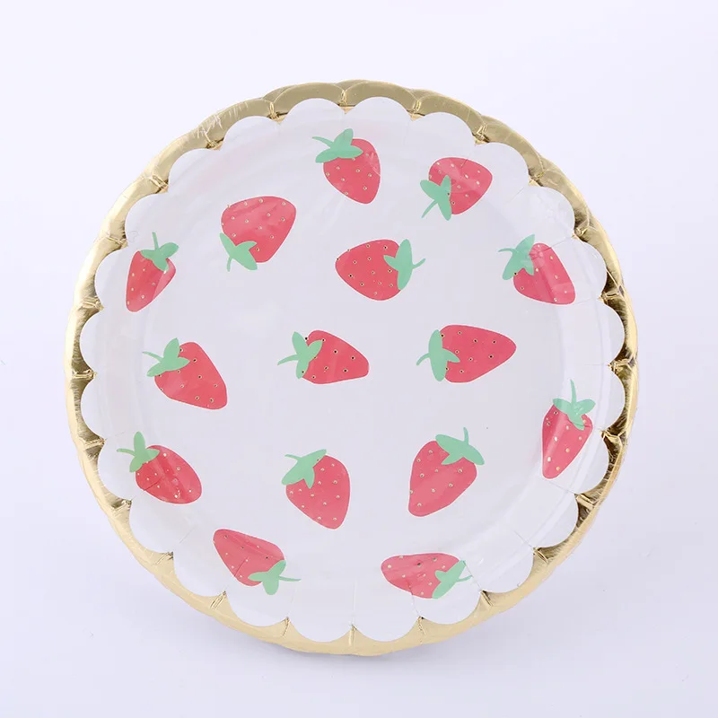 New Party Birthday Table Set Strawberry Disposable Paper Cup Plate Tablecloth Flag Set Wholesale