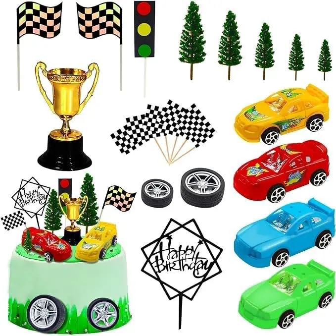 Truck Racing Flag Birthday Cake and Cupcakes Decoration for Boys' Hobby for Birthday Party