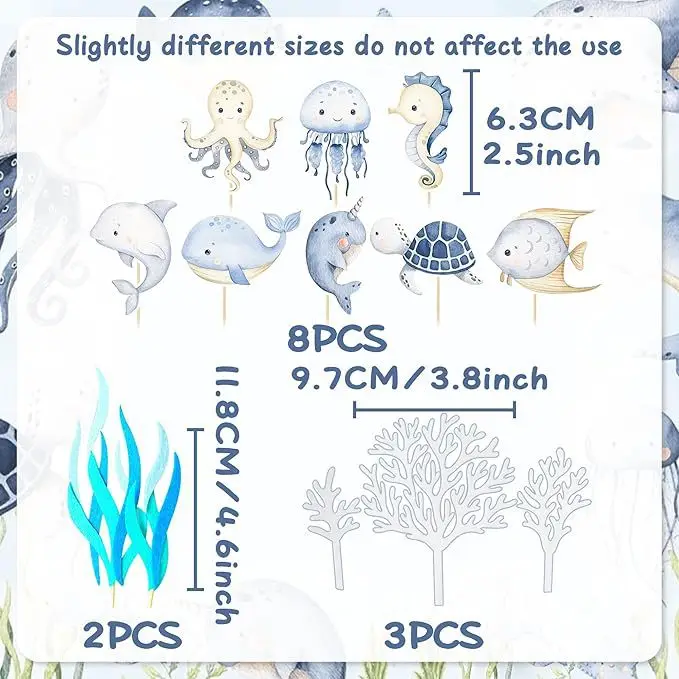 Ocean Themed Undersea Cupcake Topper for Graduation and Halloween Parties Cartoon Sea Animal Cake Decorating for Baby Showers