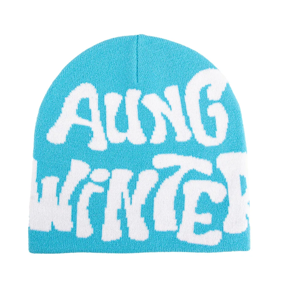 Manufacturer Custom Design All Over Print Y2K Jacquard Knit Cuffless Reversible Hat Skull Cap Skully Beanie with Logo