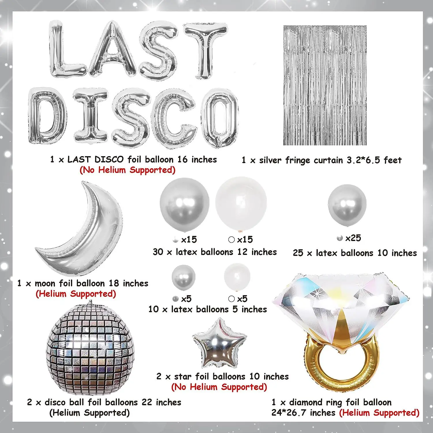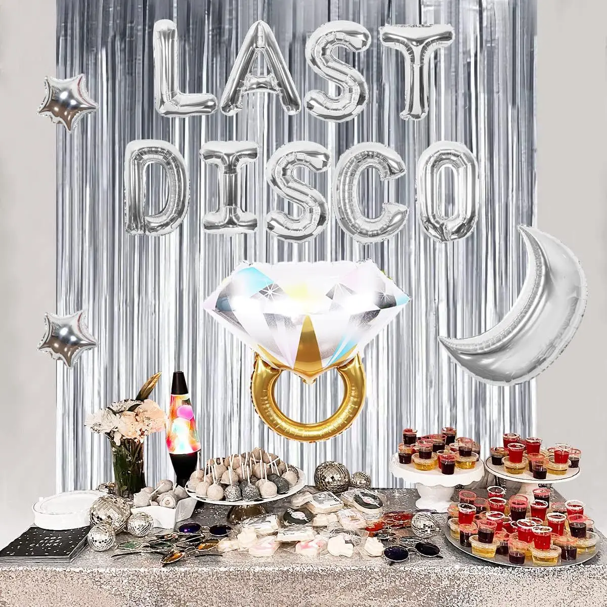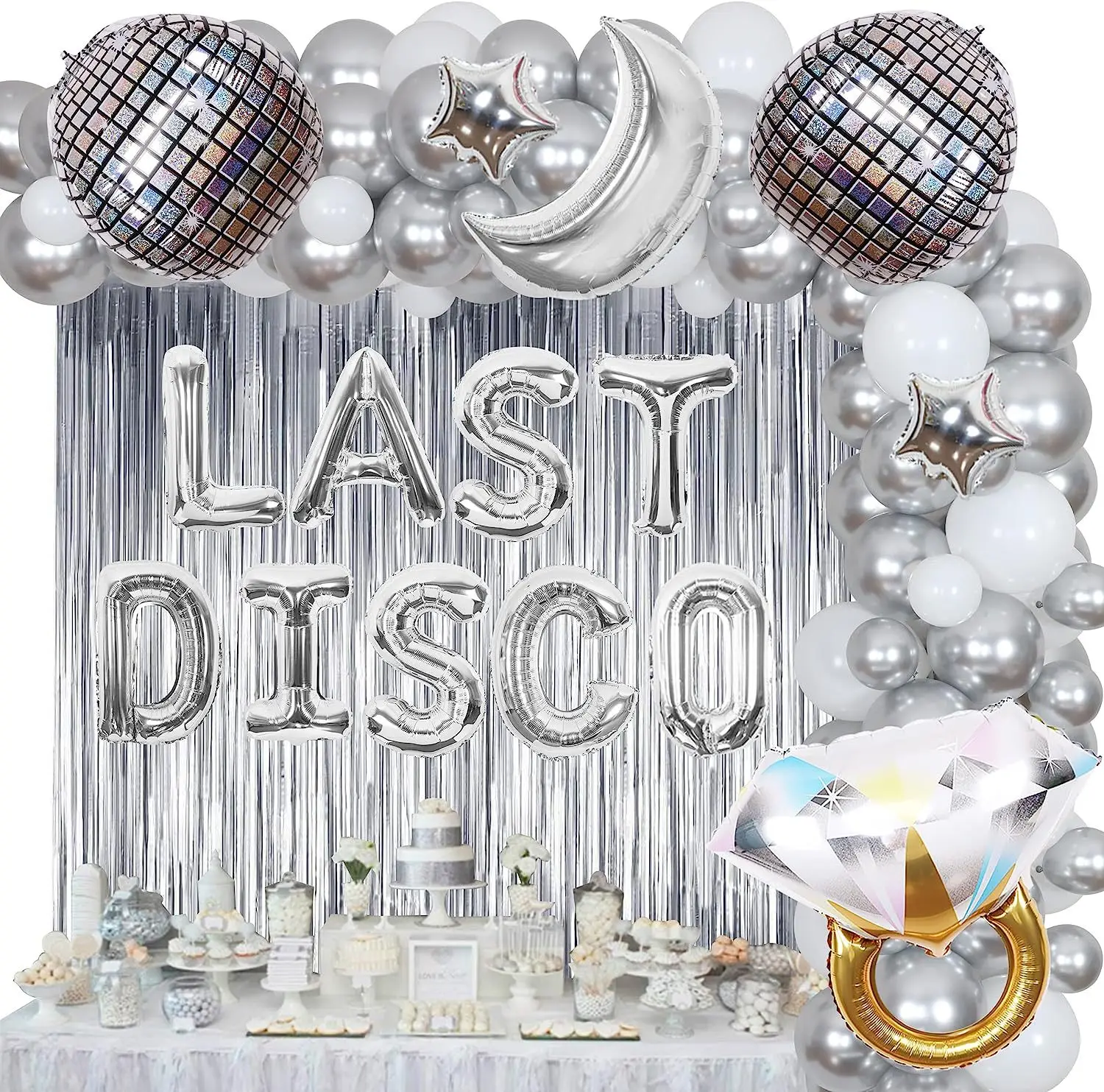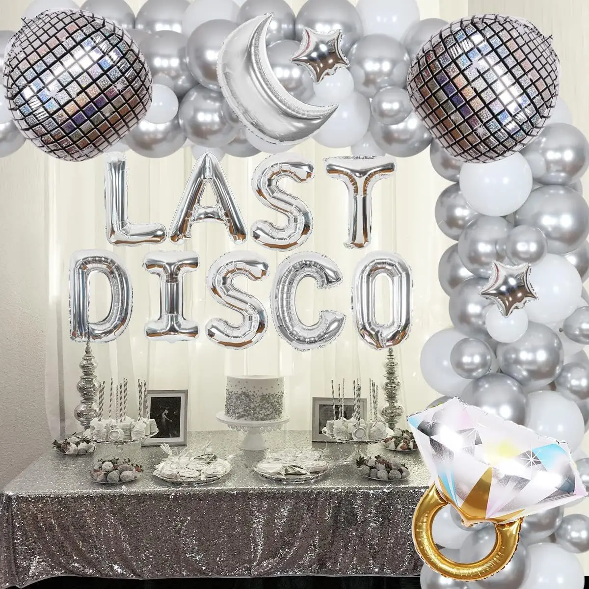 LAST DISCO Bachelor party Silver balloon set diamond ring curtain disco party decoration set