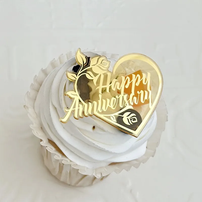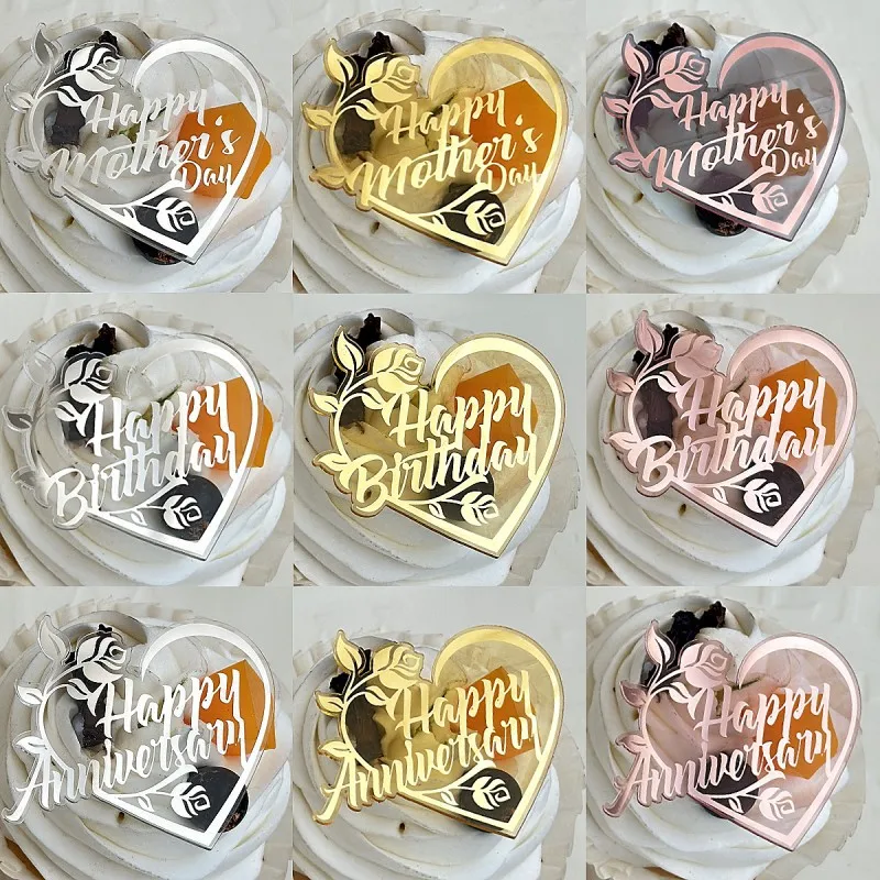 Flower Heart Acrylic Cake Decoration for Mother's Day Anniversary Cupcake decoration