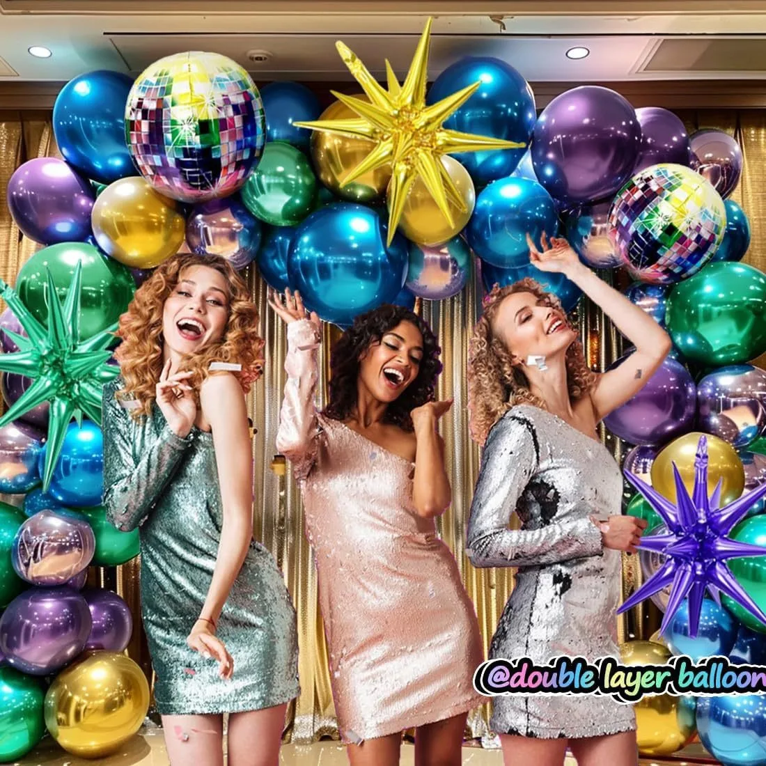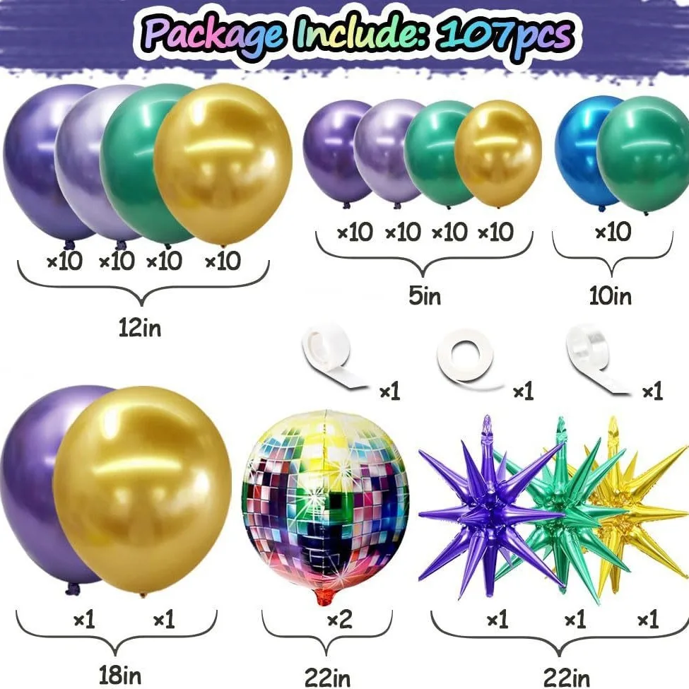 107pcs disco themed party metal balloon Exploding Star Garland Balloon arch set