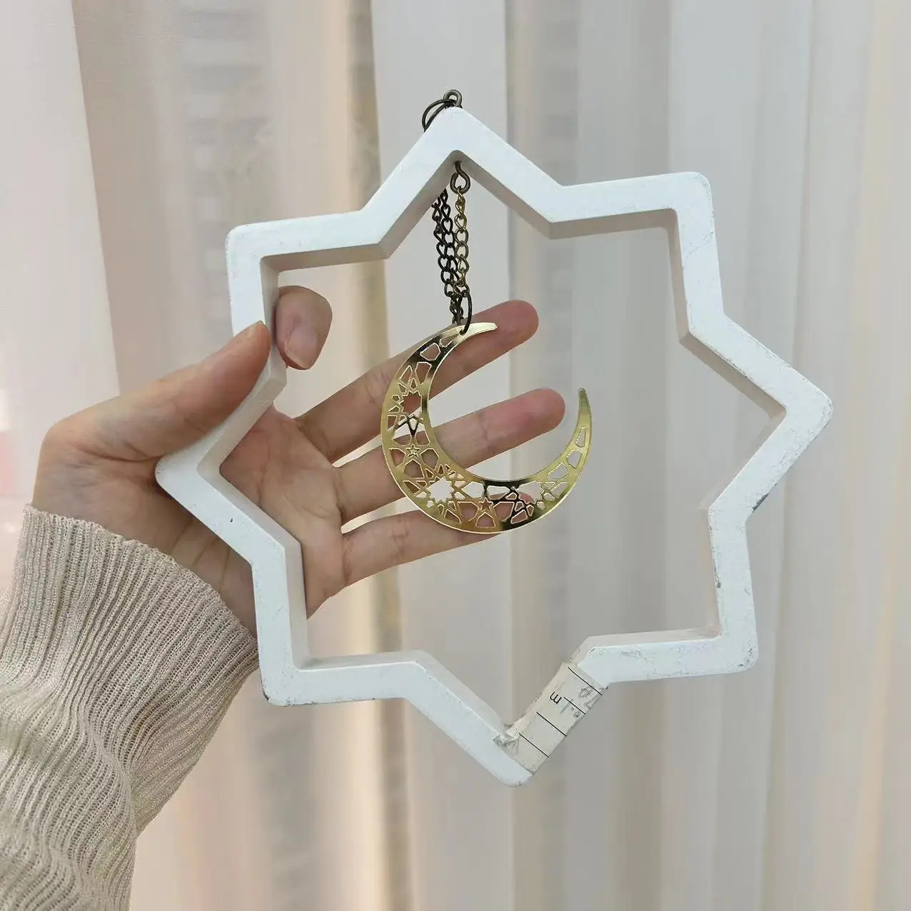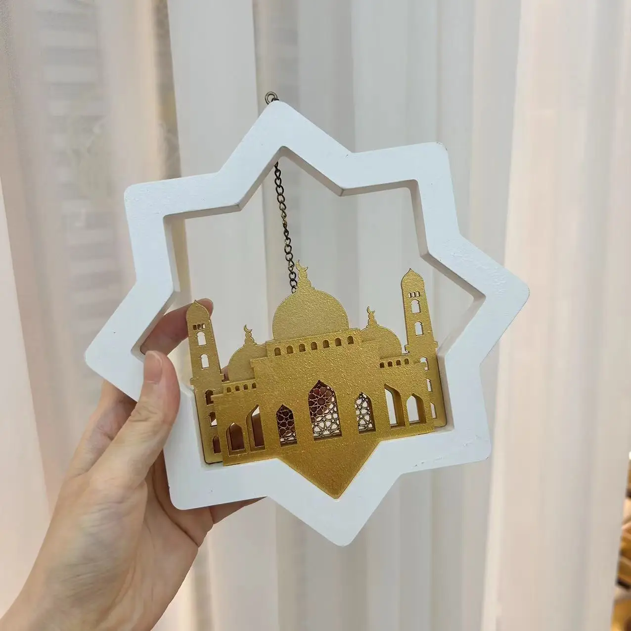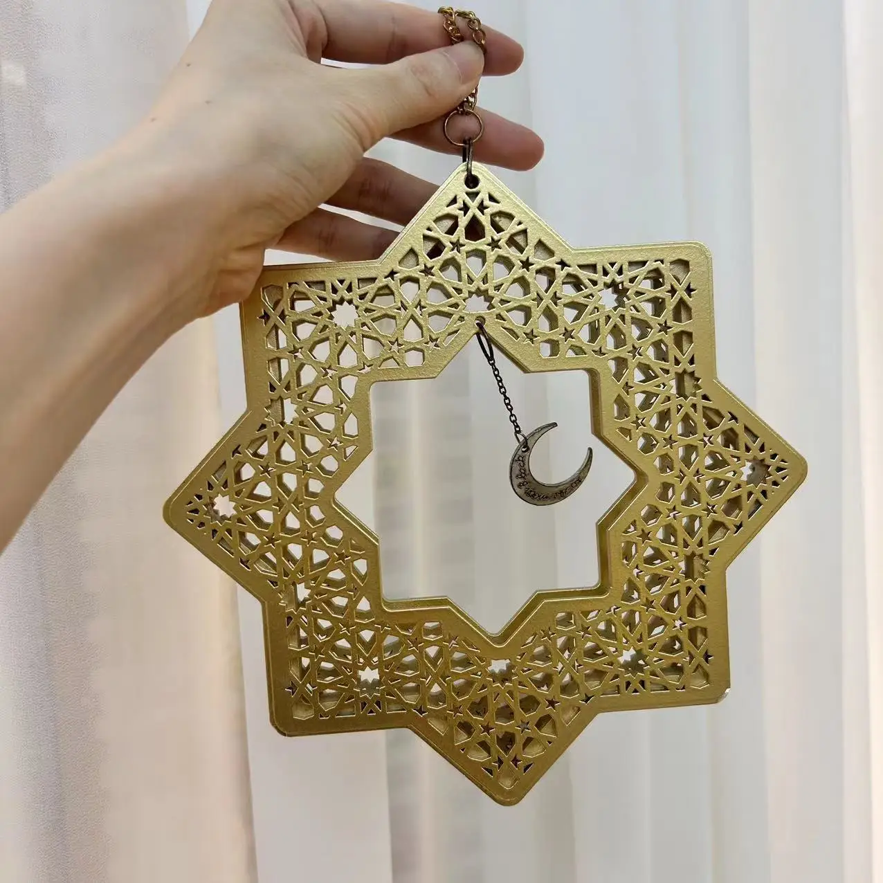 Eid Al-Adha Moon Star Pendant Eid Ramadan Mubarak Wooden Painted Mosque Decoration