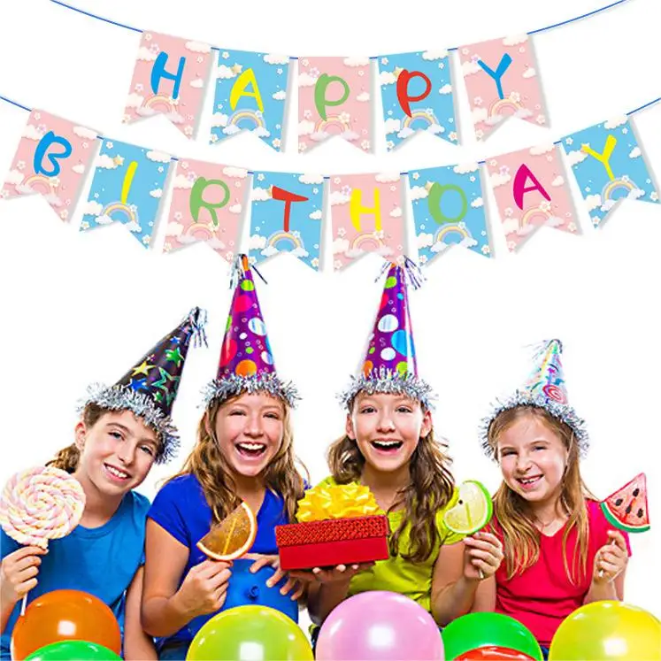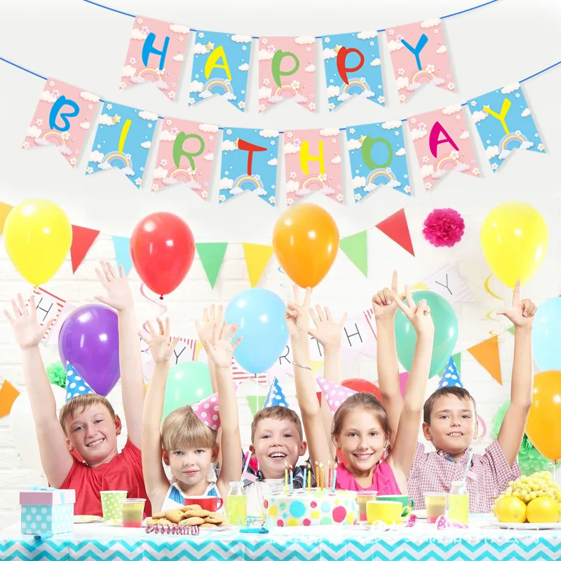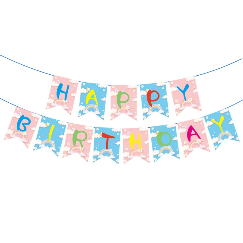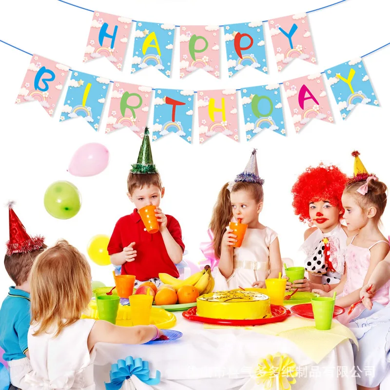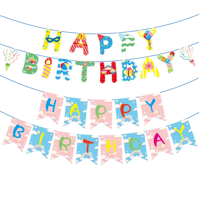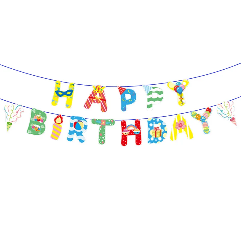 Birthday Theme Pull Flag Holiday Party Decoration Children Cartoon Paper Decorative Props